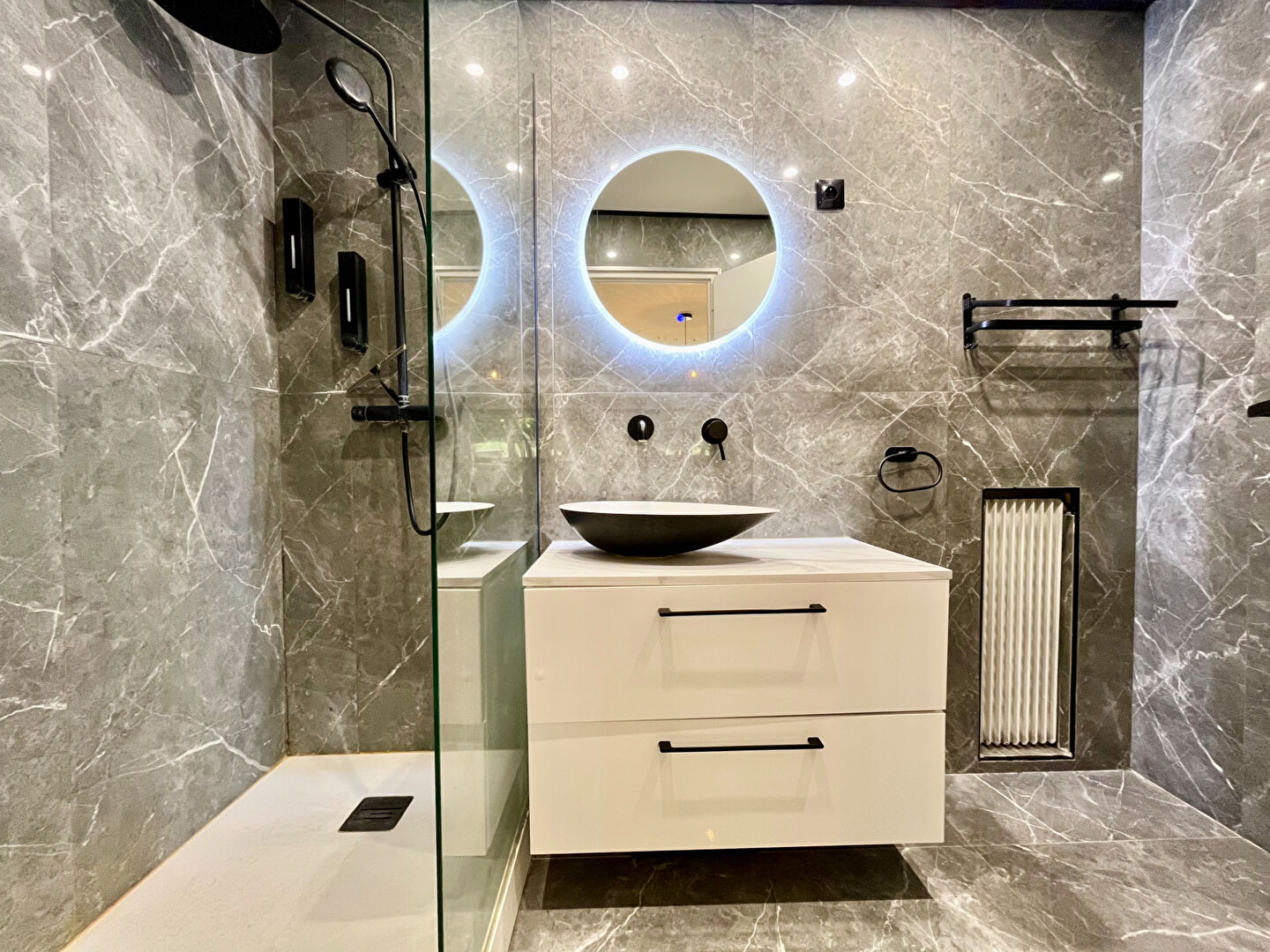 D'une superficie de 65m2, cet appartement offre un séjour lumineux avec une vue dégagée, une cuisine indépendante avec verrière entièrement équipée et aménagée, 2 chambres dont une avec dressing sur mesure, une salle d'eau avec douche, un wc séparé, de nombreux placards de rangement .