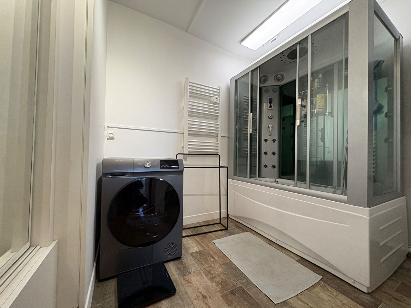 - au rez-de-chaussée : une entrée avec rangements, un grand séjour exposé SUD donnant sur une terrasse de 25m2, une cuisine entièrement aménagée et équipée donnant également sur la terrasse, un WC.