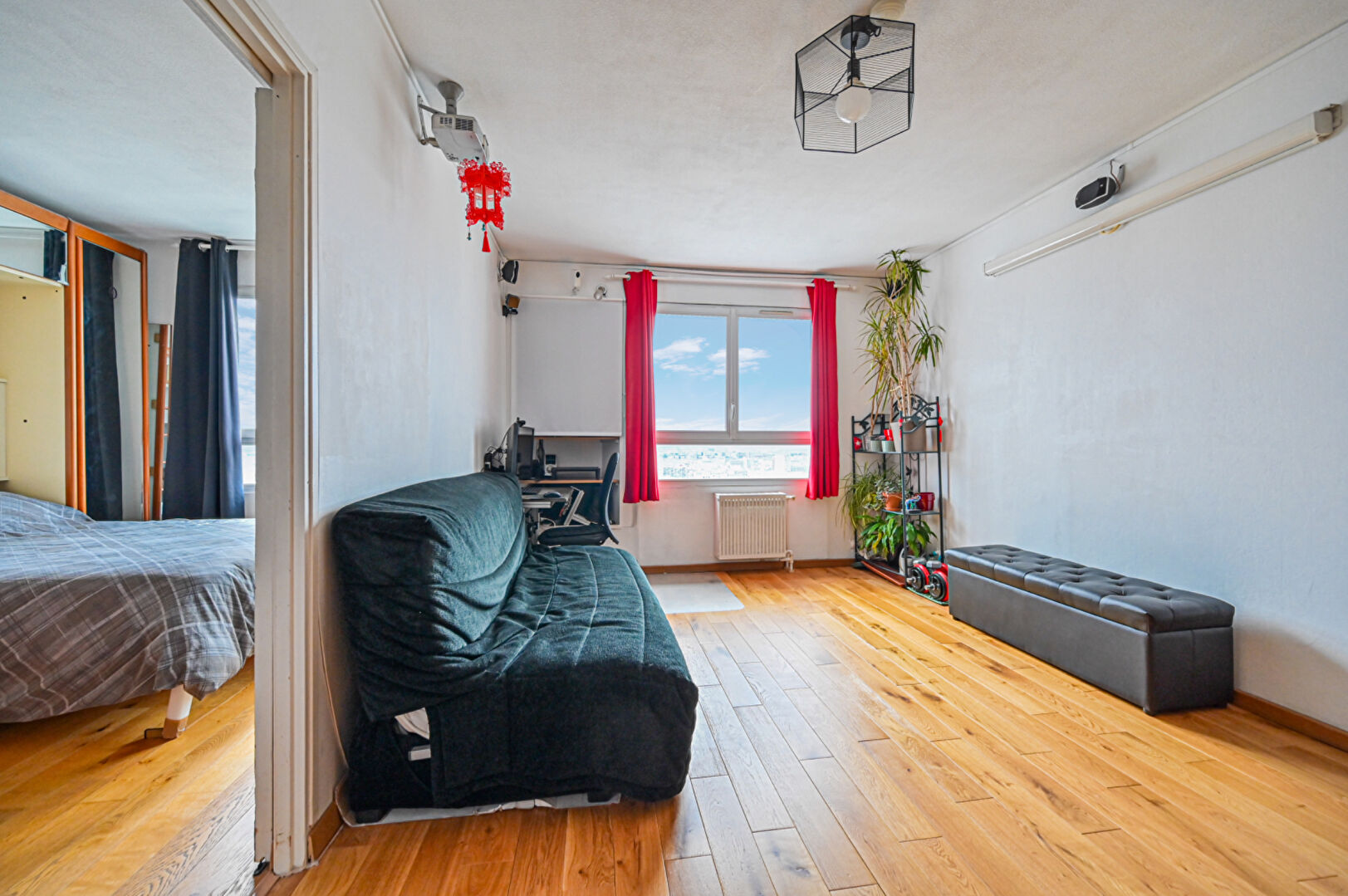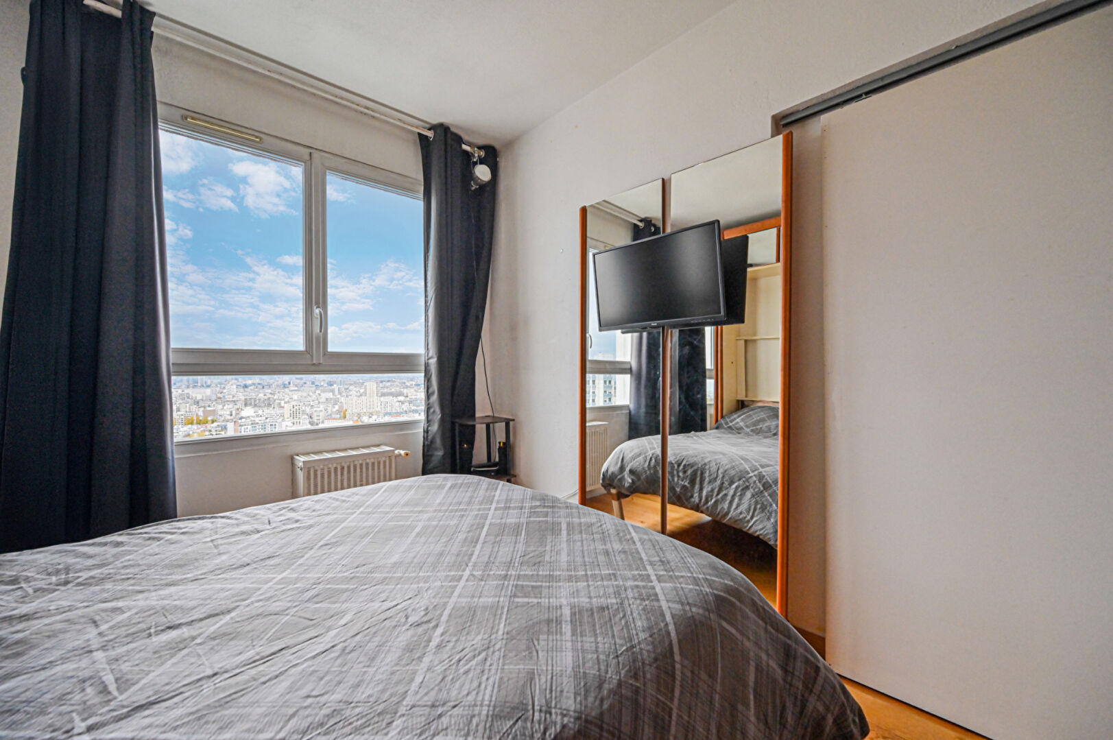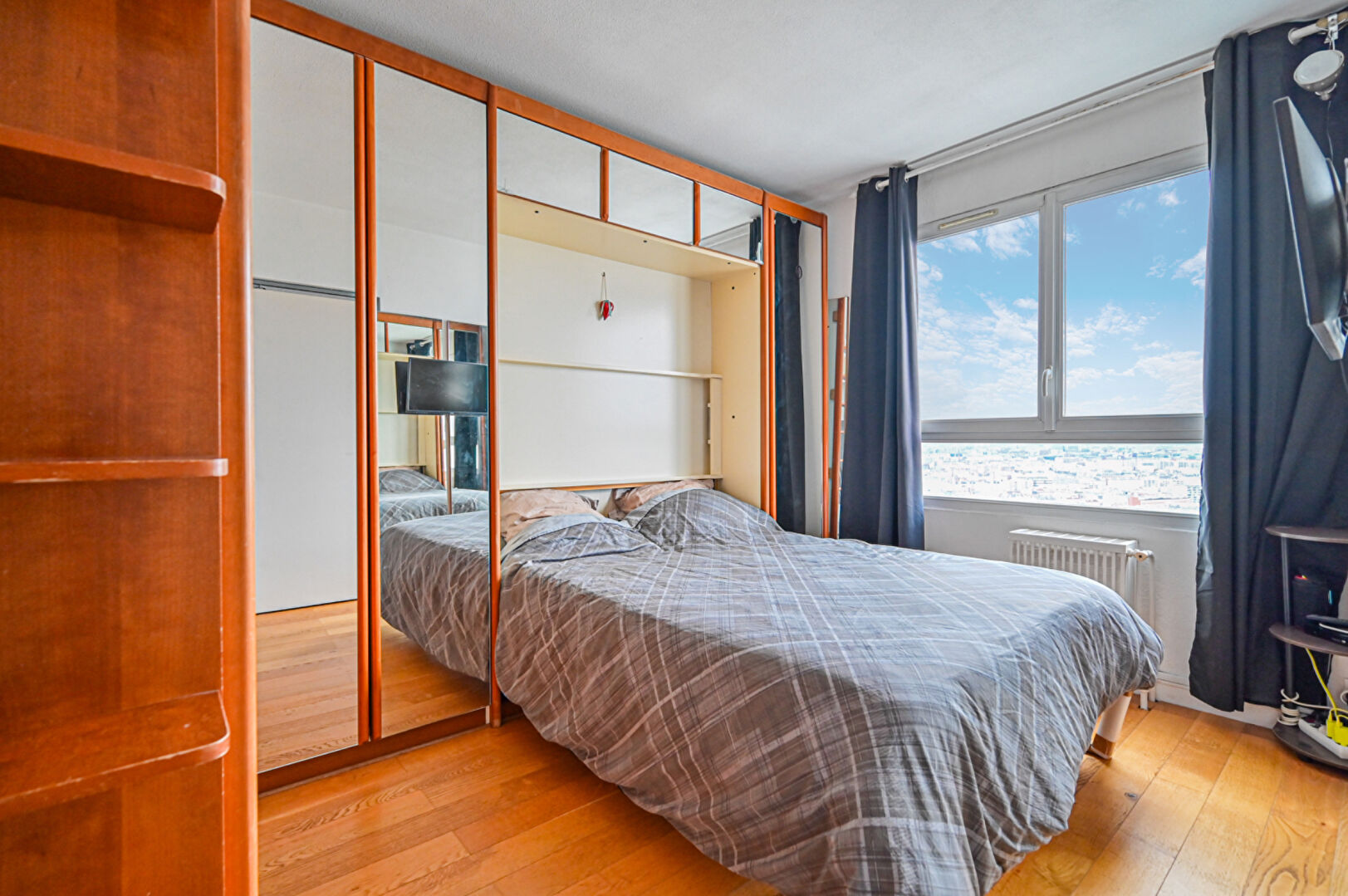 Dans la tour Saint Blaise, au 27 eme étage avec ascenseur. Un appartement de 2 pièces, comprenant entrée avec placards, une alcove, séjour de 22m2 avec cuisine ouverte, avec vue dégagée, 1 chambre, une salle d'eau avec WC.