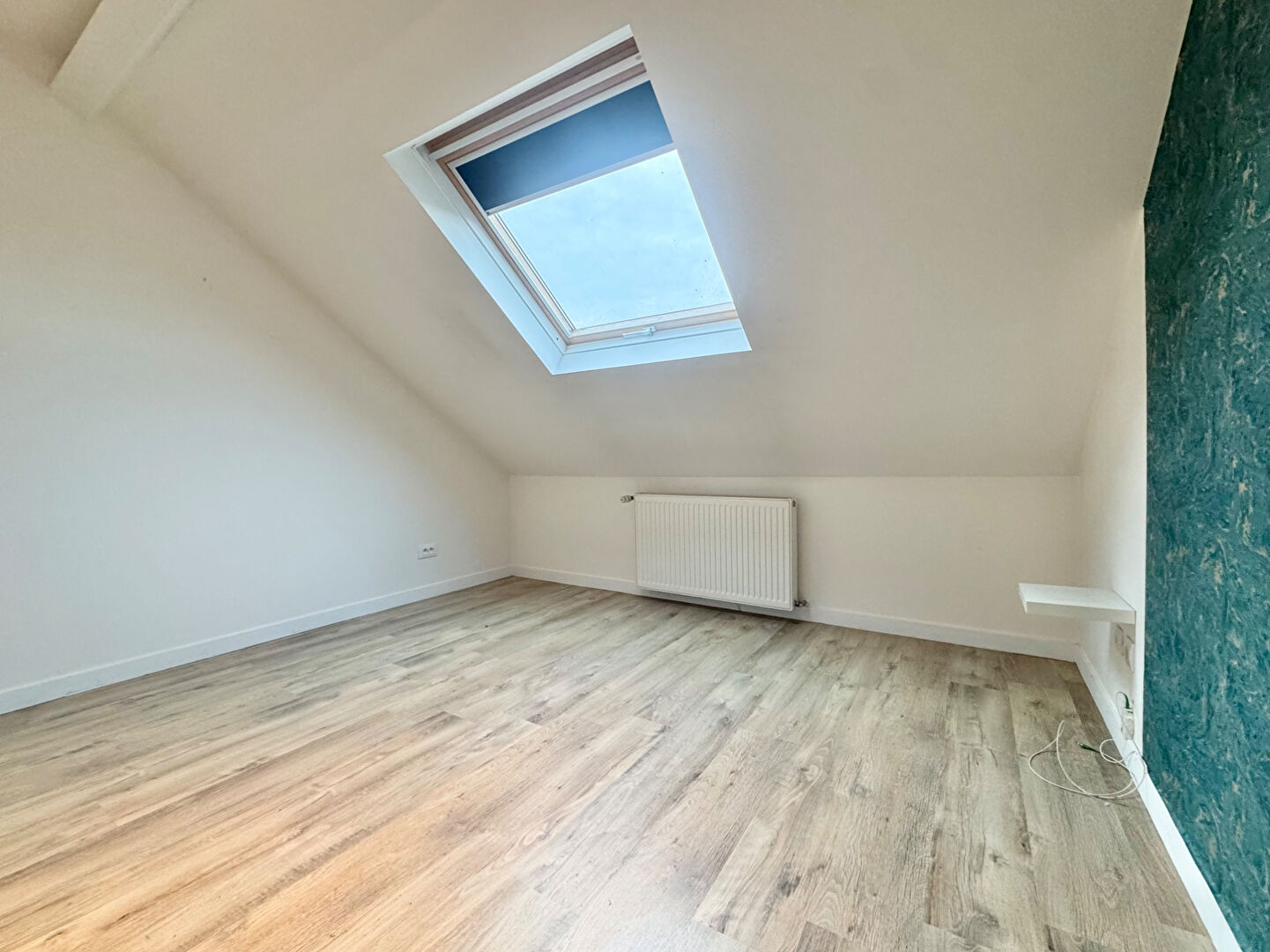 La salle de douche ultra spacieuse et bien agencée se veut moderne, pratique et lumineuse. Emplacements pour votre lave-linge et votre sèche-linge côte à côte, fil rétractable pour étendre le linge, douche à l'italienne, wc suspendu et meuble vasque neuf. Velux. Il reste de l'espace pour la meubler davantage au besoin.