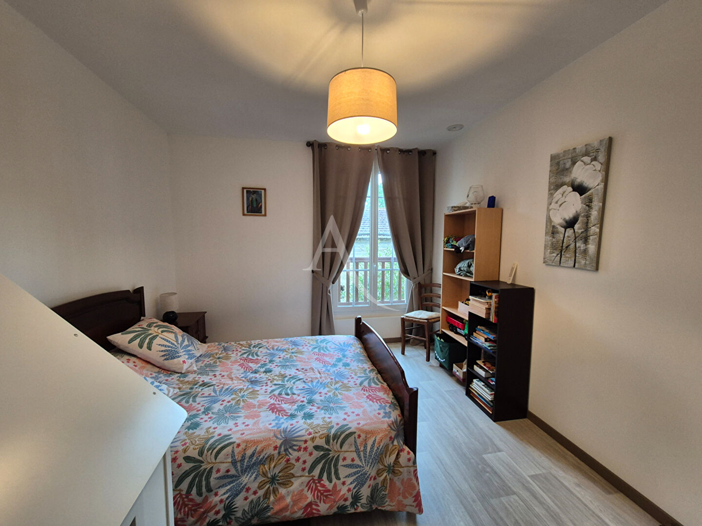 À l'étage, un palier distribue quatre chambres aux volumes remarquables d'environ 14, 16 et 21 m², une salle d'eau, un WC indépendant, un local technique et un accès aux combles aménageables offrant de nouvelles perspectives d'aménagement selon vos projets.