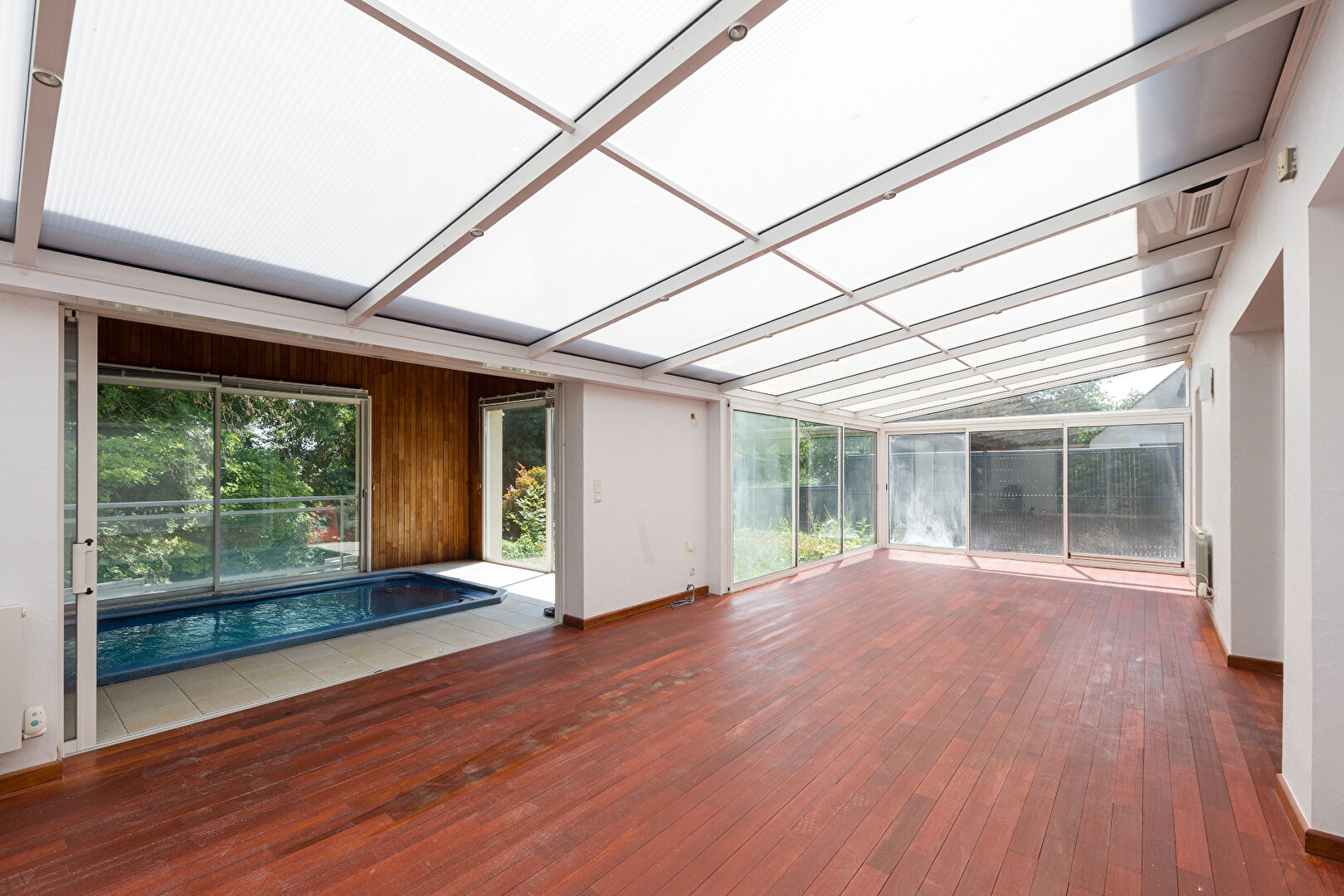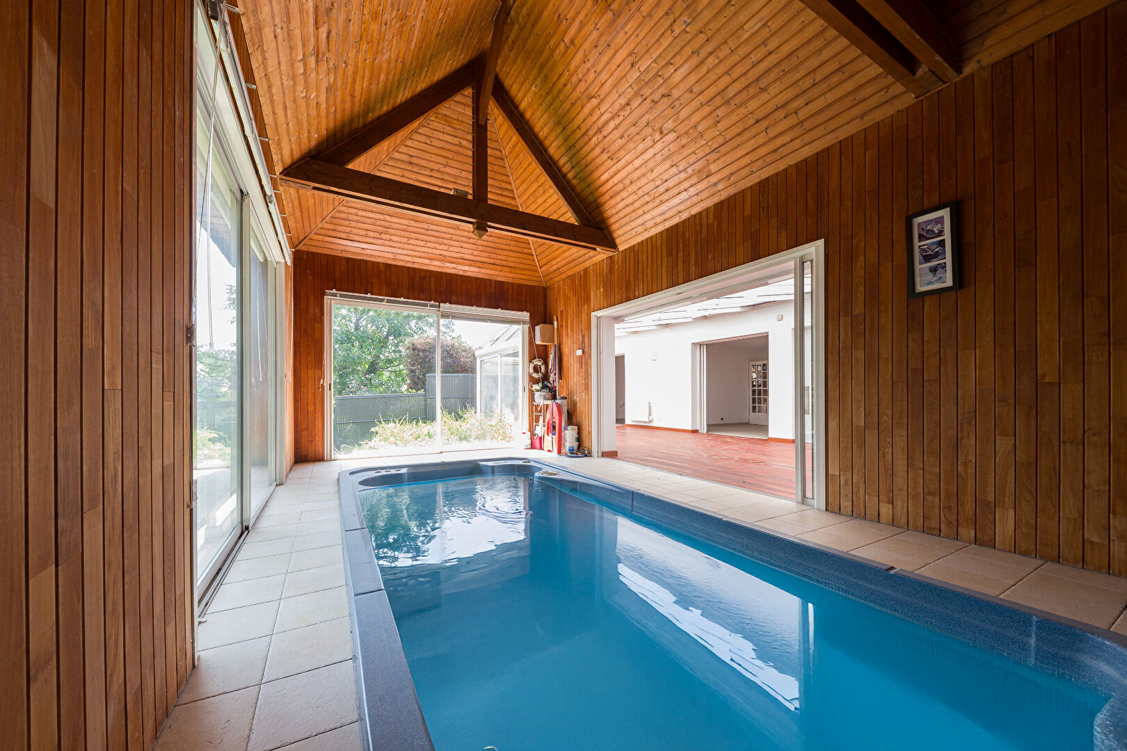 Annet-sur-Marne, belle maison située dans une impasse, au calme, comprenant une entrée, un dégagement avec placard et W.C, un espace cuisine (à aménager), une salle à manger et un séjour totalisant 45m² avec cheminée et accès à la véranda d'une surface de plus de 40m² donnant sur le jardin et la piscine couverte avec nage à contre-courant. De plus vous bénéficierez d'une chambre au rez-de-chaussée. A l'étage un palier qui dessert trois chambres dont une suite parentale, une salle d'eau et un W.C indépendant.