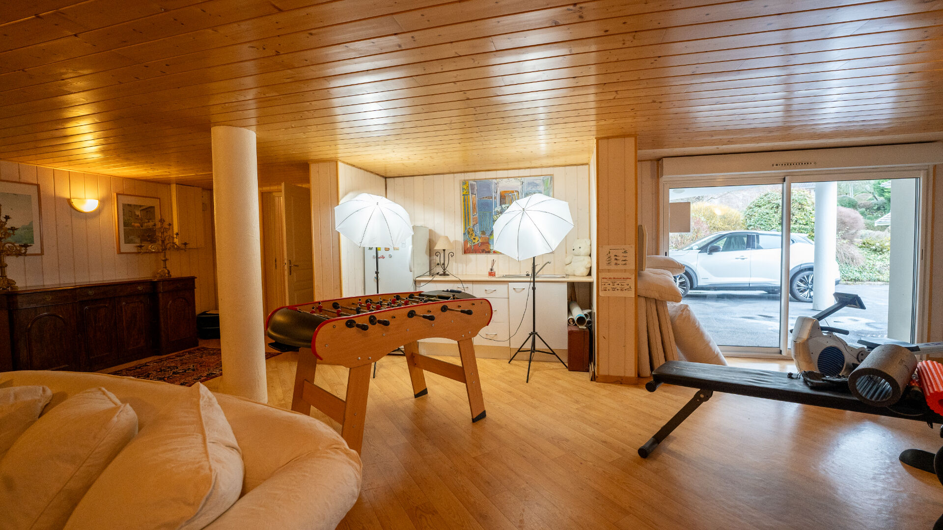 Le rez-de-chaussée offre un espace particulièrement intéressant et modulable :?un garage, une buanderie, une chambre avec salle de bains, des WC indépendants, ainsi qu'une pièce de plus de 30 m². Cet ensemble permet également la création d'un espace totalement indépendant, idéal pour une fille au pair. L'espace supplémentaire offre de nombreuses variantes telles que salle de jeux, home cinéma , salle de fitness ou atelier pour des activités créatives.