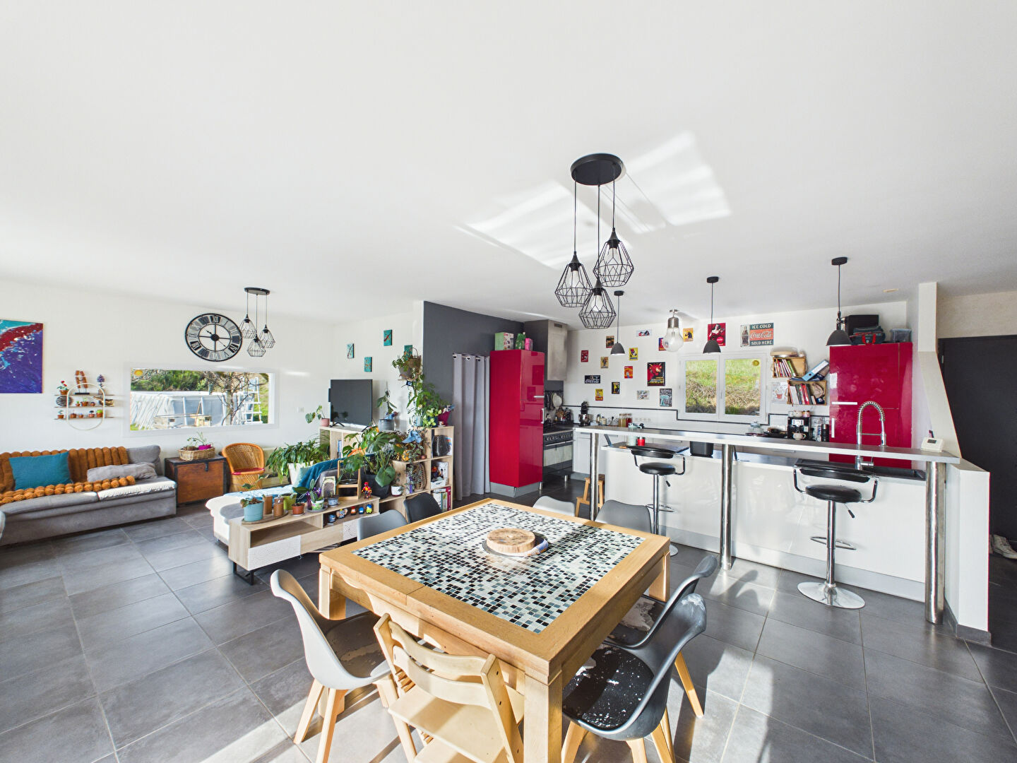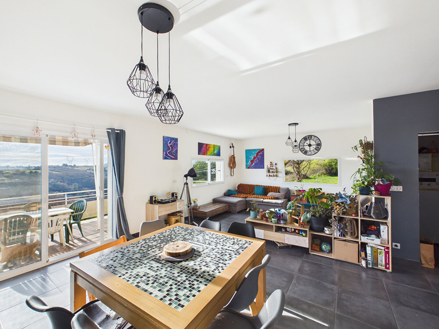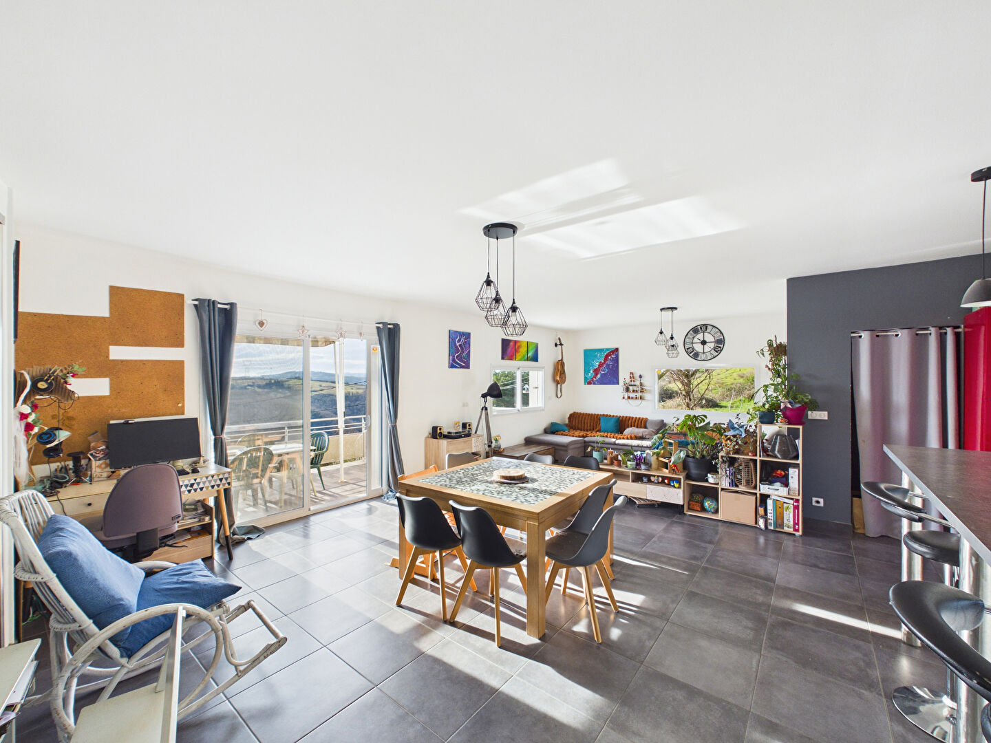 La pièce de vie s'ouvre sur une belle terrasse exposée plein sud, idéale pour profiter pleinement de la vue et de l'environnement.