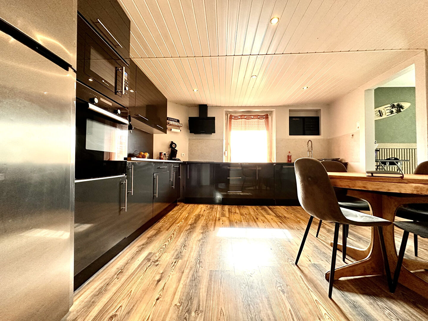 Dès l'entrée, vous serez séduit par les volumes et la luminosité des pièces. Le rez-de-chaussée vous offre une belle cuisine équipée, une vaste pièce de vie conviviale, une salle d'eau, un WC indépendant, une buanderie ainsi qu'une chambre, idéale pour un couchage de plain-pied.