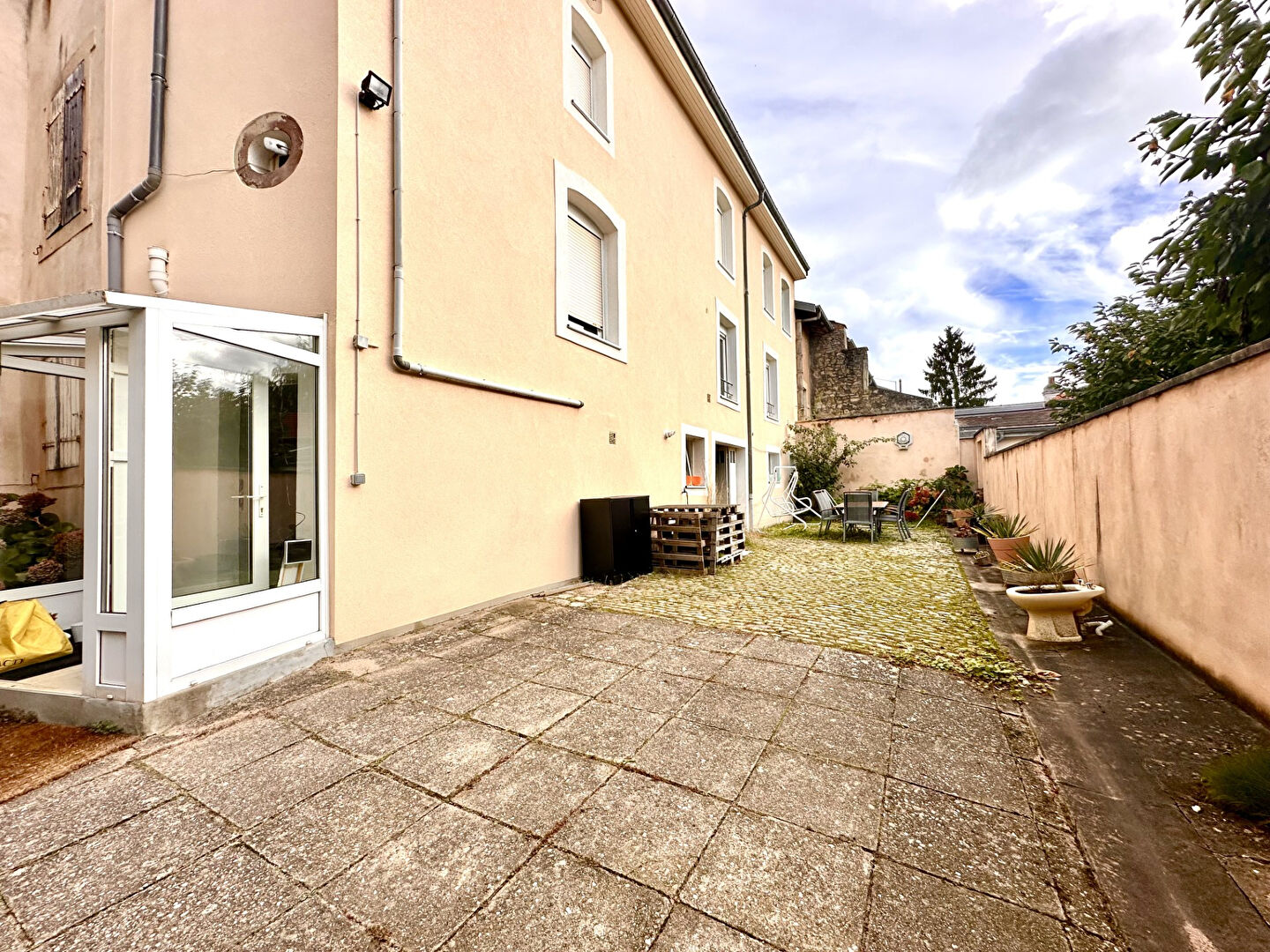Une cour ensoleillée vient compléter ce bien, parfaite pour profiter du plein air ou se détendre au soleil.
