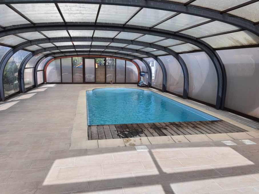 En été, profitez d'un grand jardin ensoleillé, avec une piscine chauffée et couverte, ainsi qu'un bassin avec un ponton donnant accès à un charmant cabanon. De plus, pour un maximum de rangements, la maison dispose d'un second garage et d'un appentis pour stocker votre bois.