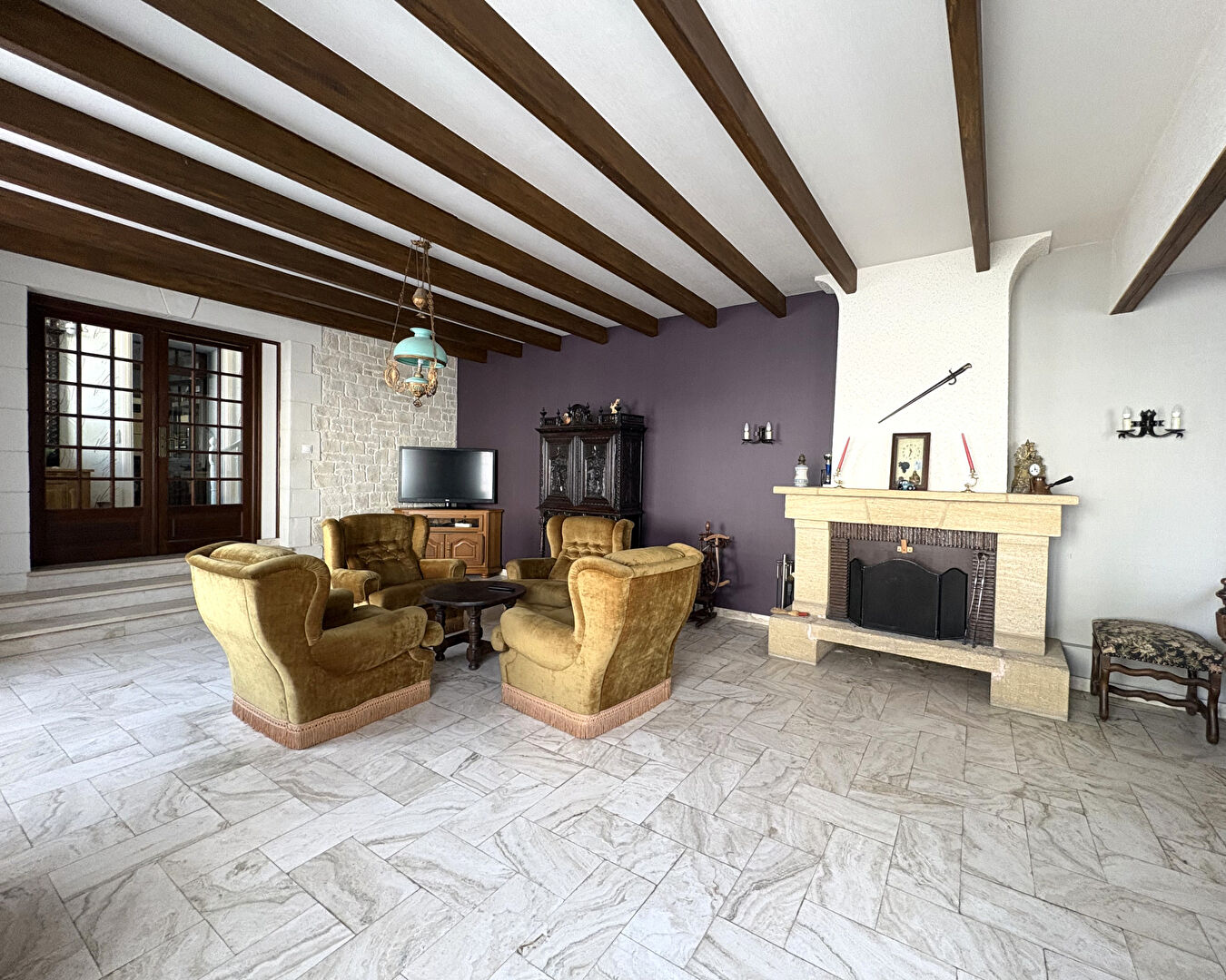 Dès l'entrée, vous serez séduits par une vaste pièce de vie salon/salle à manger, chaleureuse et conviviale, sublimée par une authentique cheminée à bois.