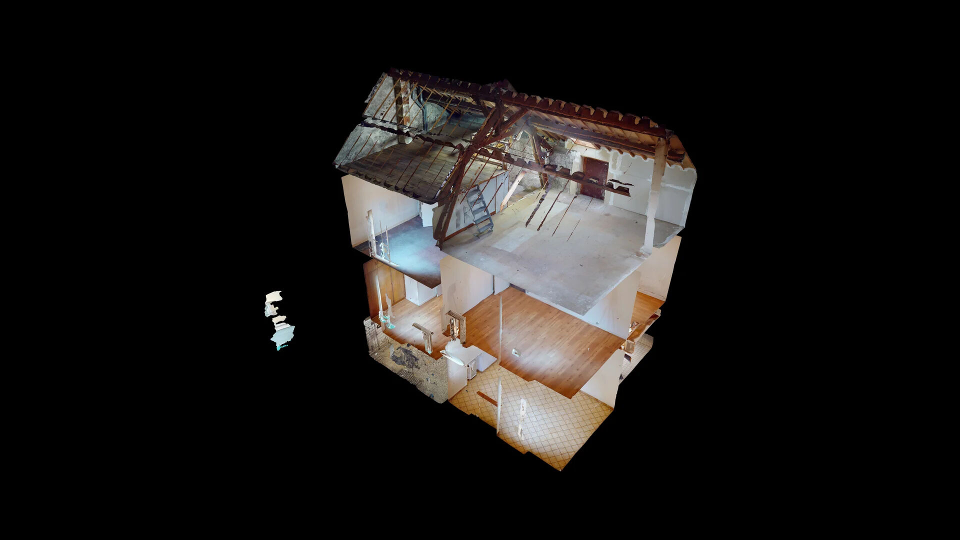 Au premier étage : un palier donnant sur une chambre, une salle de bains et un wc indépendant,