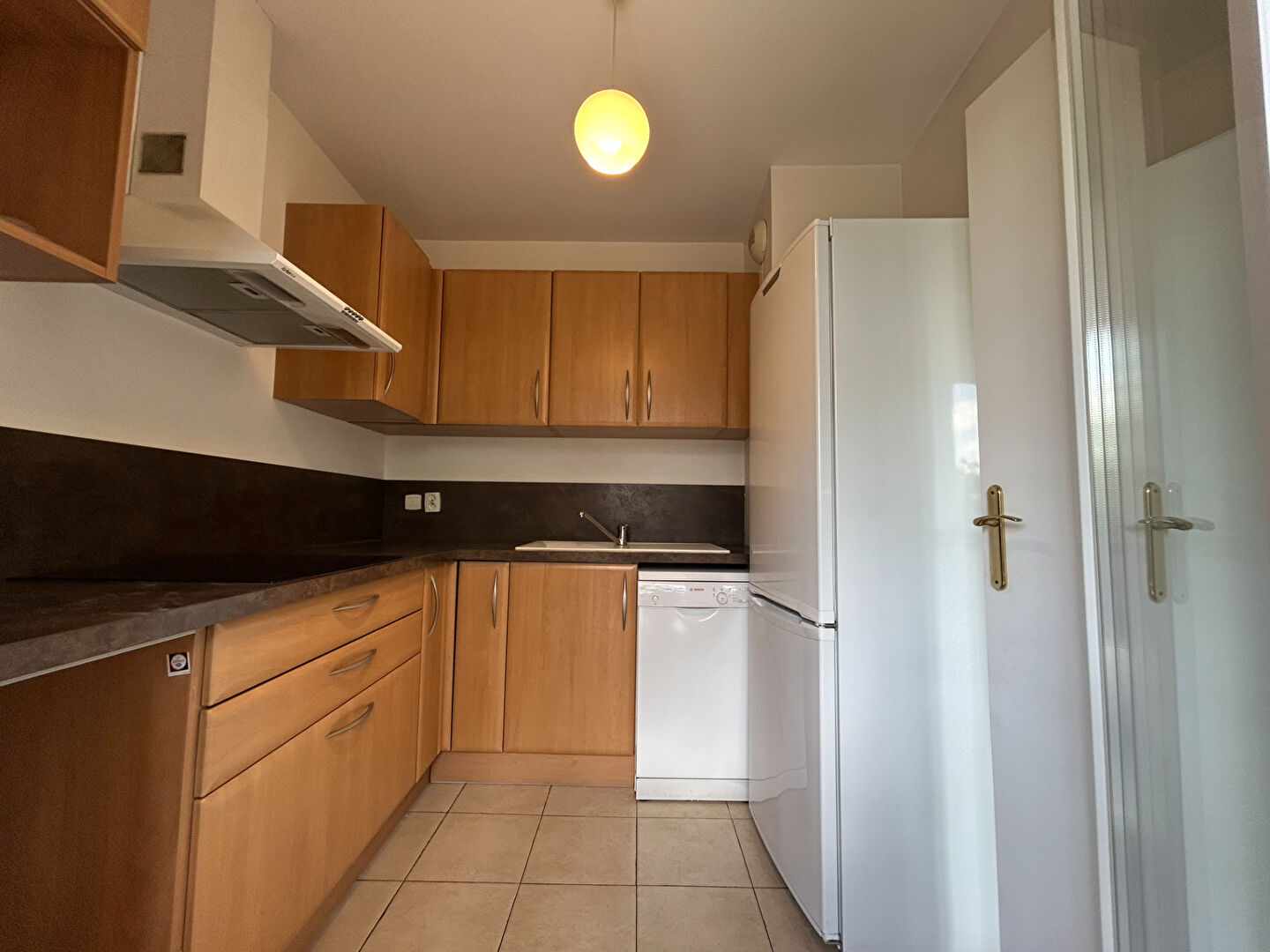 2 rue de la Garenne, Résidence de 2009 avec gardien, au 2ème étage avec ascenseur, beau 3 pièces lumineux en très bon état comprenant : entrée avec placard, séjour de 19 m2 environ, cuisine indépendante aménagée et équipée (hotte, plaque de cuisson, frigo, LV), deux chambres avec placard, salle de bains, WC. chauf élec indiv, volets roulants électriques.