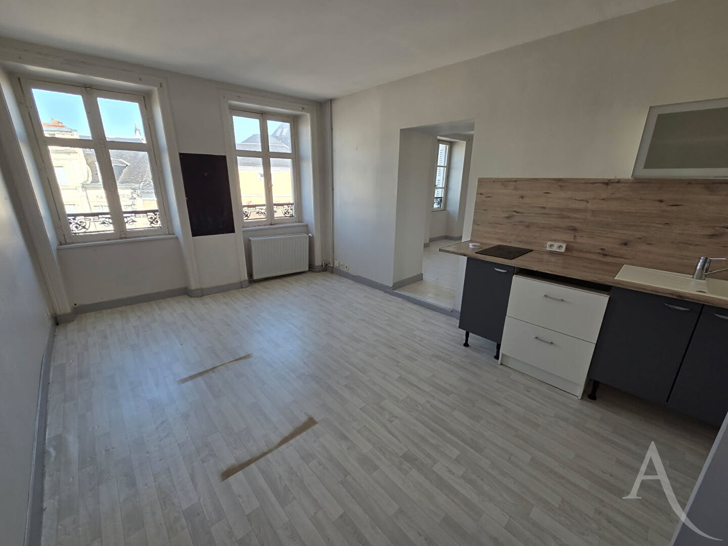 Situé au 2ème étage d'un petit immeuble de centre ville, ce T2 vous offre: une cuisine/ salle à manger, un séjour, une chambre, une pièce pouvant être aménagée en dressing, espace buanderie et salle d'eau avec wc.