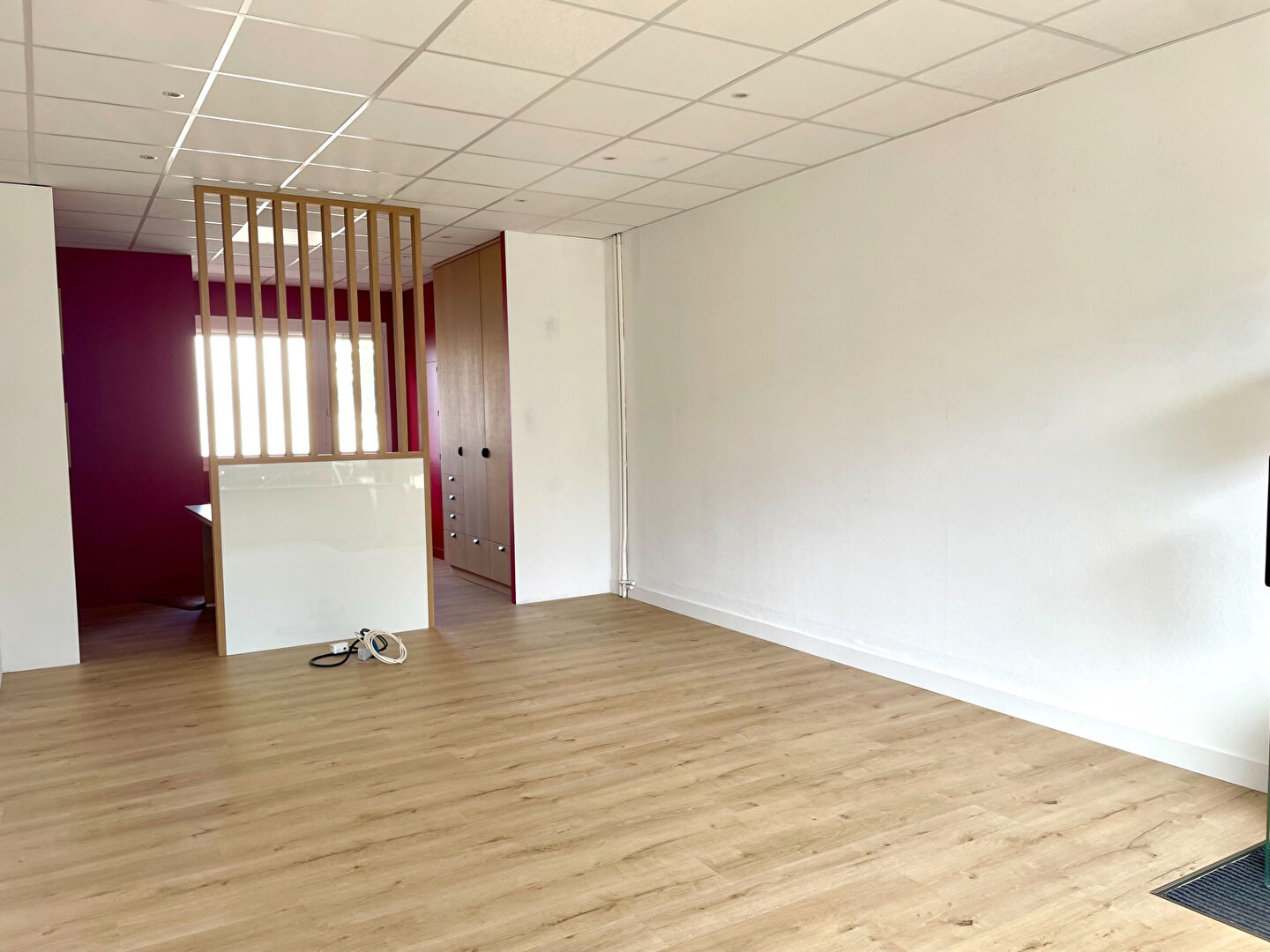 Une grande pièce séparée en deux par une cloison qui permet d'avoir un bureau d'accueil et un espace bureaux avec rangements, une belle vitrine donne sur l'avenue Pasteur et un WC avec lavabo.