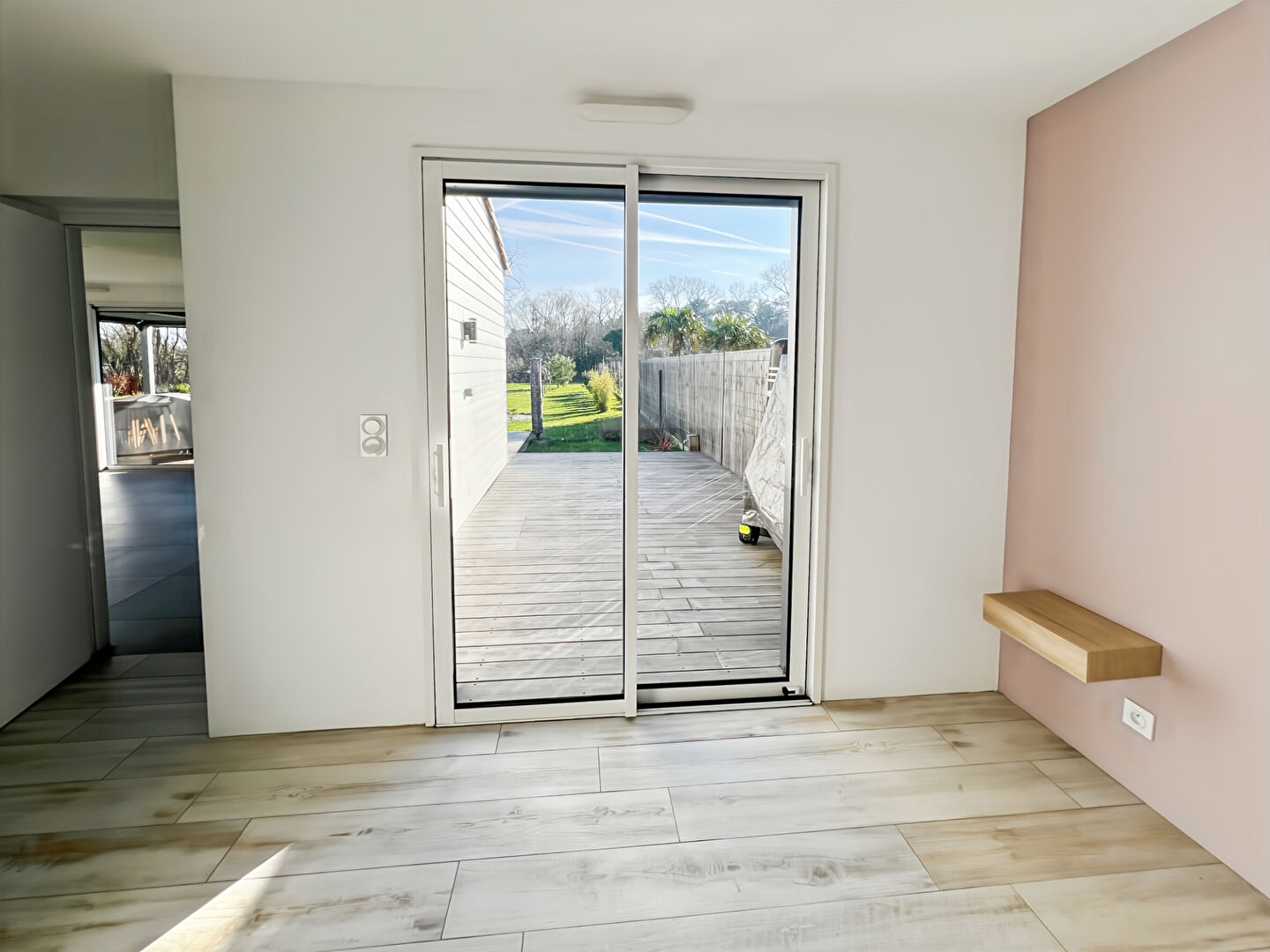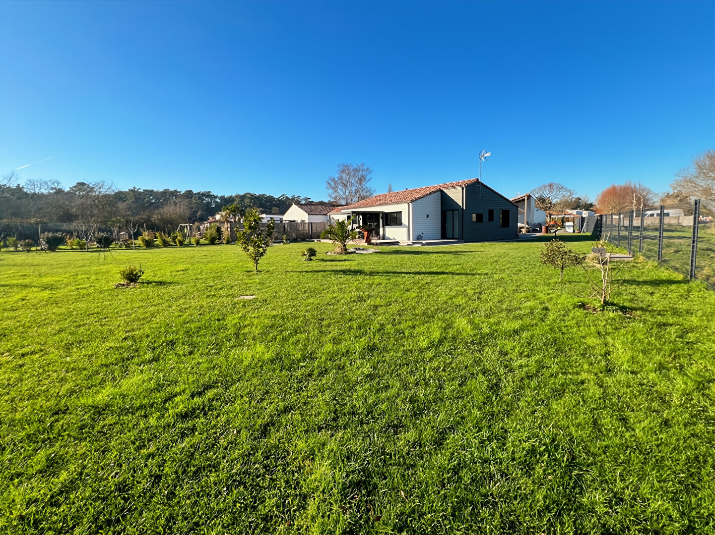 EXCLUSIVITE - A VENDRE - SAINT JEAN DE MONTS - Maison récente de plain pied comprenant : une entrée desservant un cellier, un wc et une pièce de vie ouvrant largement sur une spacieuse terrasse en bois exposée sud et donnant sur le jardin paysager. La suite parentale avec salle d'eau/wc donne également sur une terrasse. La 2e chambre et le bureau, pouvant être aménagé en 3e chambre, partagent la 2e salle d'eau. Le tout sur un terrain clos de 1518 m².