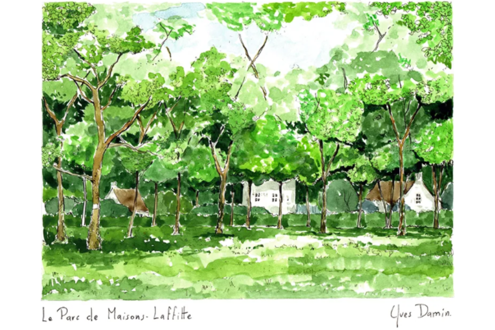 Le Parc de Maisons Laffitte est un environnement unique en Ile-de-France à plus d'un titre : à quelques kilomètres de Paris, cette commune des Yvelines est accessible en quelques minutes de Paris la Défense et de l'Etoile à Paris. Sa situation géographique en fait un lieu de villégiature prisé par les franciliens en manque de verdure. Le peintre aquarelliste Yves Damin nous propose ses tableaux pour nous accompagner dans cette promenade dans la ville.