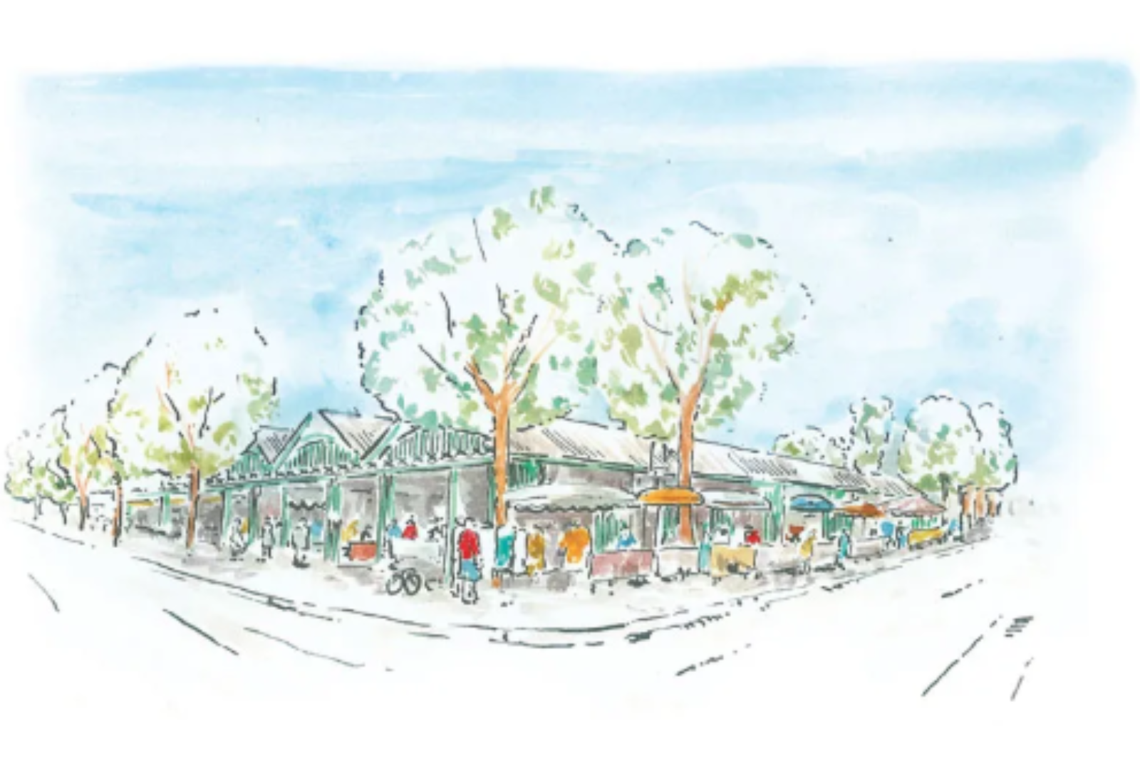 Aquarelle du marché de Maisons-Laffitte