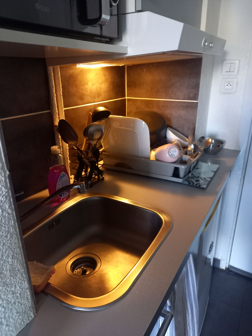 Il se compose d'une pièce de vie fonctionnelle avec une cuisine entièrement équipée, une salle d'eau rénové avec goût et bien agencée avec WC.