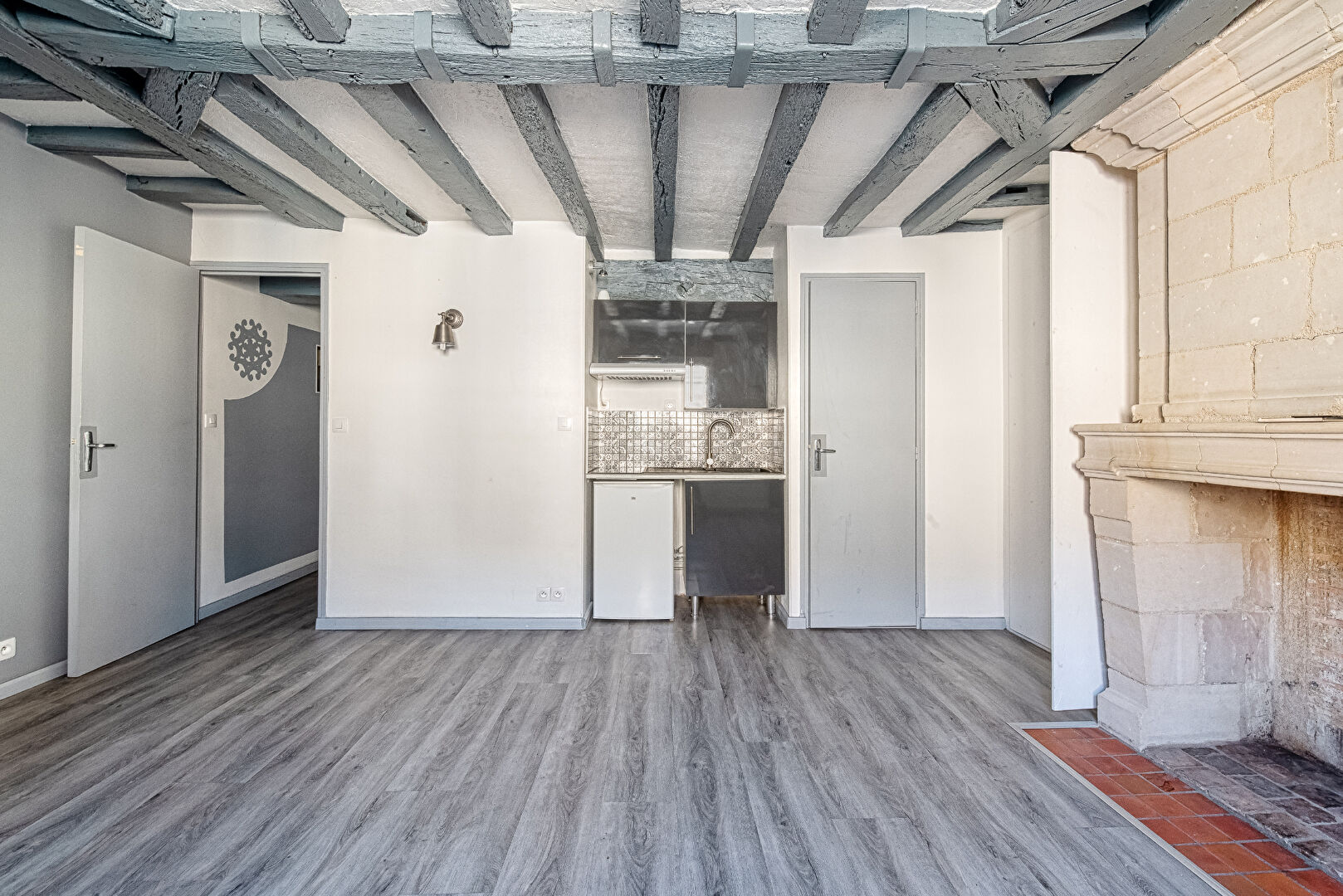 Vous retrouverez le charme de l'ancien dans la belle pièce de vie avec sa cheminée en tuffeau et de belles poutres d'époque. Il dispose d'un coin kitchenette (Hôte, plaques, réfrigérateur), d'une salle d'eau avec machine à laver et d'un cabinet de WC séparé, le tout en très bon état.