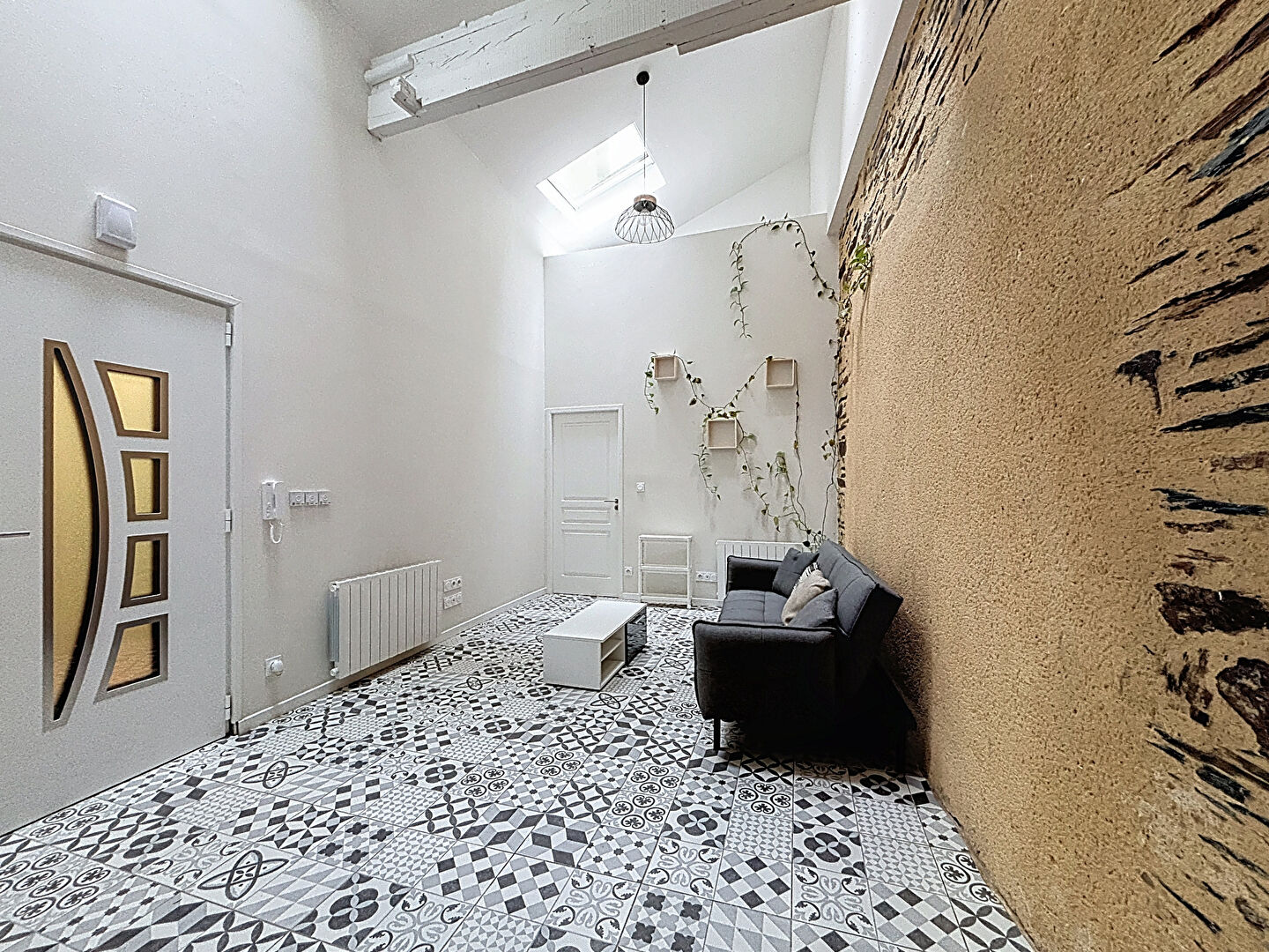 La pièce de vie séduit par sa belle hauteur sous plafond, apportant luminosité et sensation d'espace. Les deux chambres proposent des surfaces confortables et une atmosphère chaleureuse.