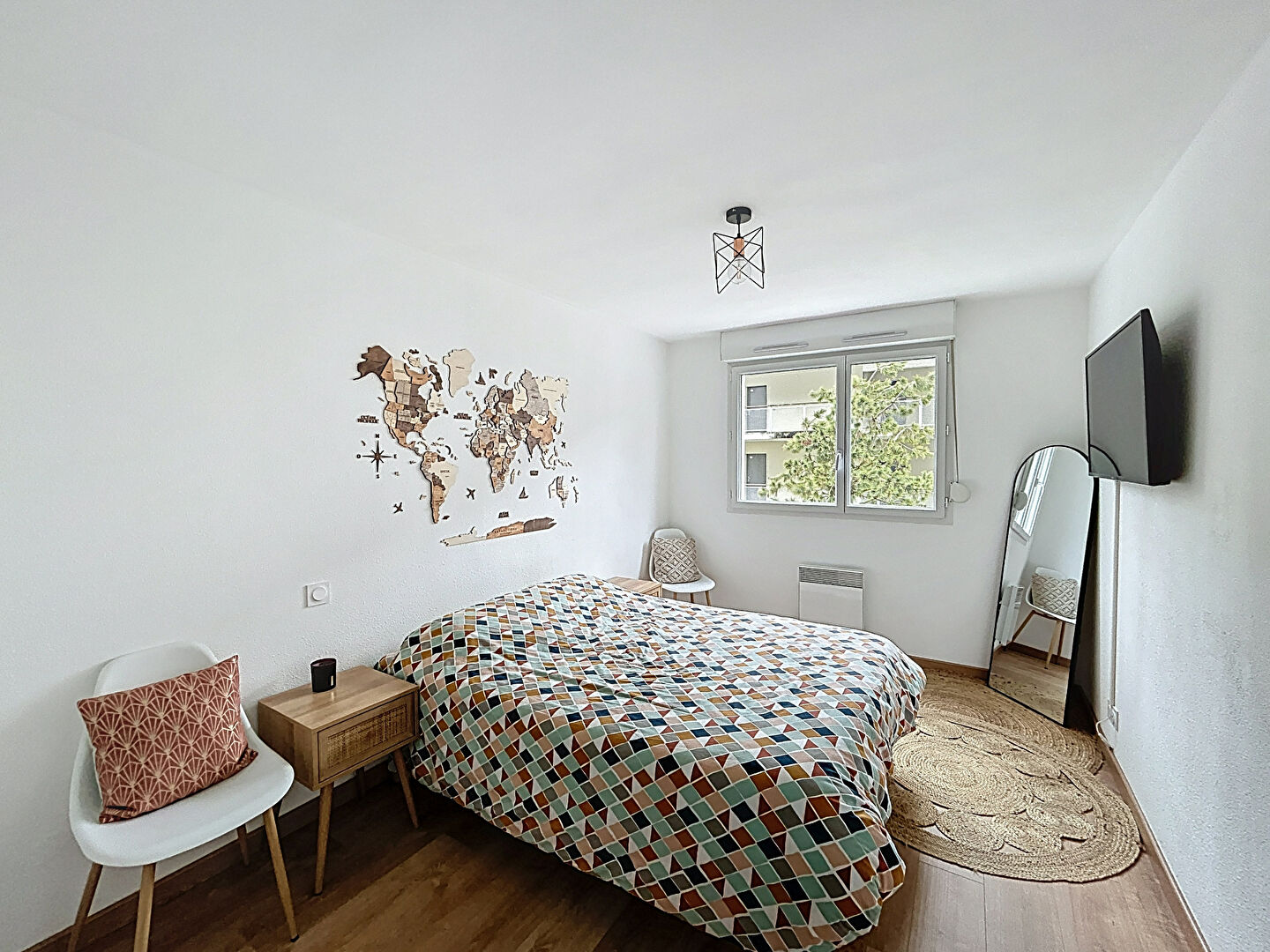 L'appartement dispose de deux chambres, toutes deux dotées de placards, ainsi que d'une salle de bains et de WC séparés. La résidence, construite en 2006, est agréable et bien tenue. Le chauffage individuel électrique permet de gérer sa consommation en toute autonomie, et les charges s'élèvent à 120 € par mois.