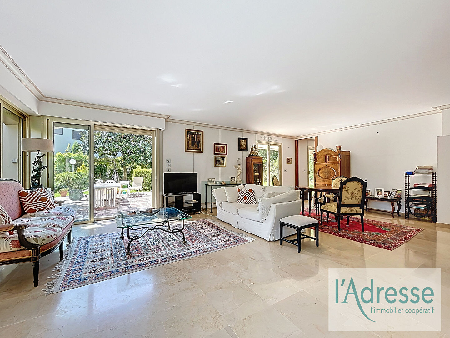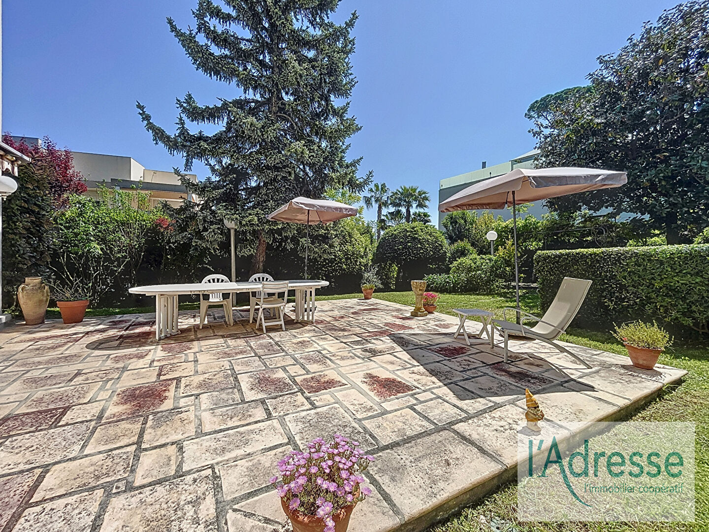 D'une surface généreuse, il se compose de 5 chambres, d'un vaste salon/salle à manger ouvrant sur un splendide jardin privatif exposé Sud d'environ 800 m², idéal pour profiter de la douceur de vivre méditerranéenne en toute intimité.