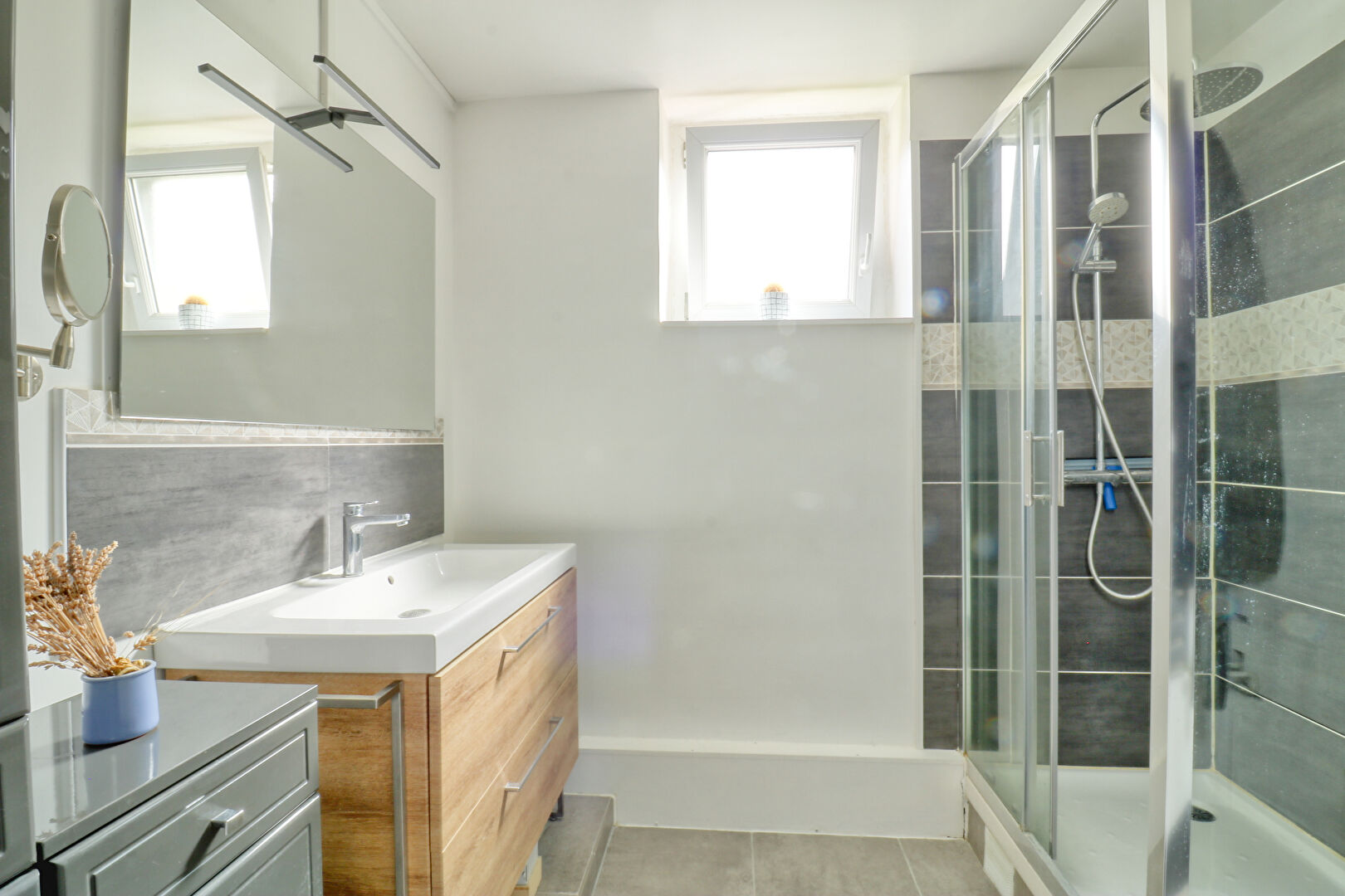 - Une salle de bains confortable avec douche, sèche serviette et coin buanderie