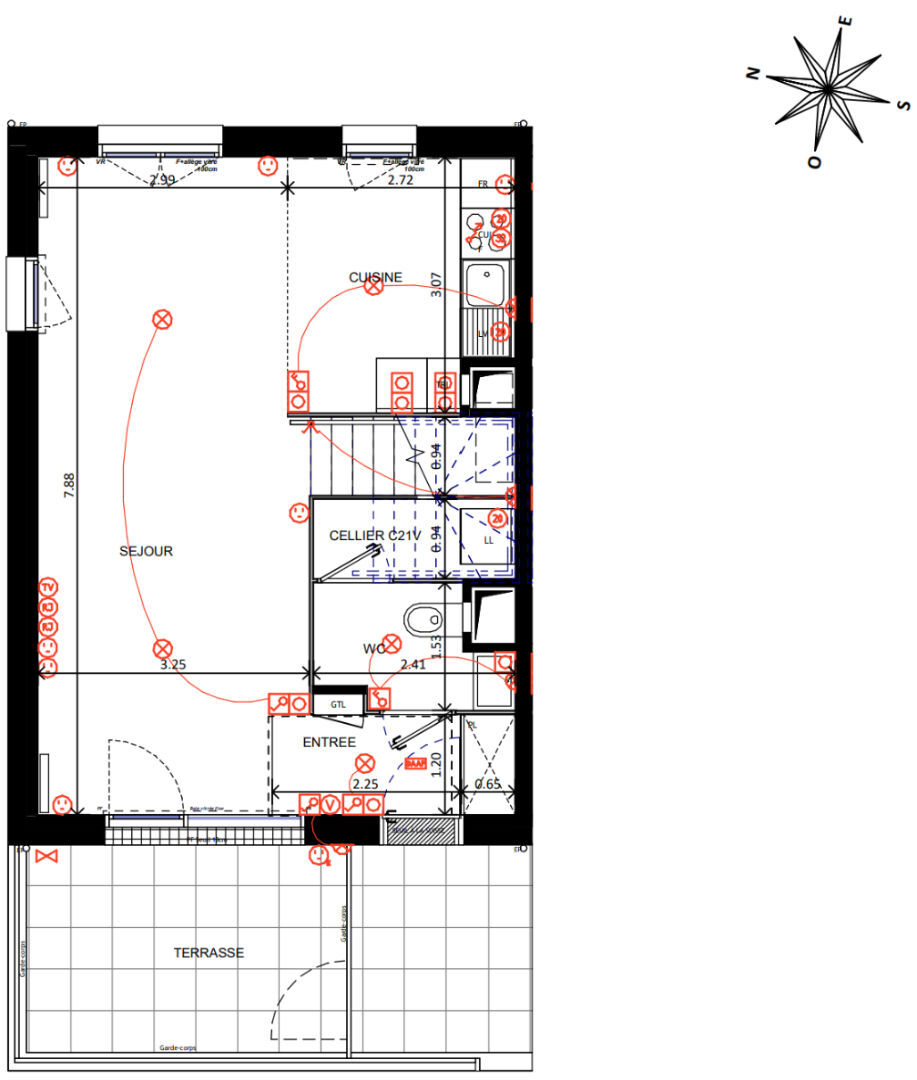 Une grande pièce de vie lumineuse avec espace cuisine, créant un espace convivial pour se retrouver en famille ou entre amis. Un WC indépendant et un cellier viennent compléter ce niveau.