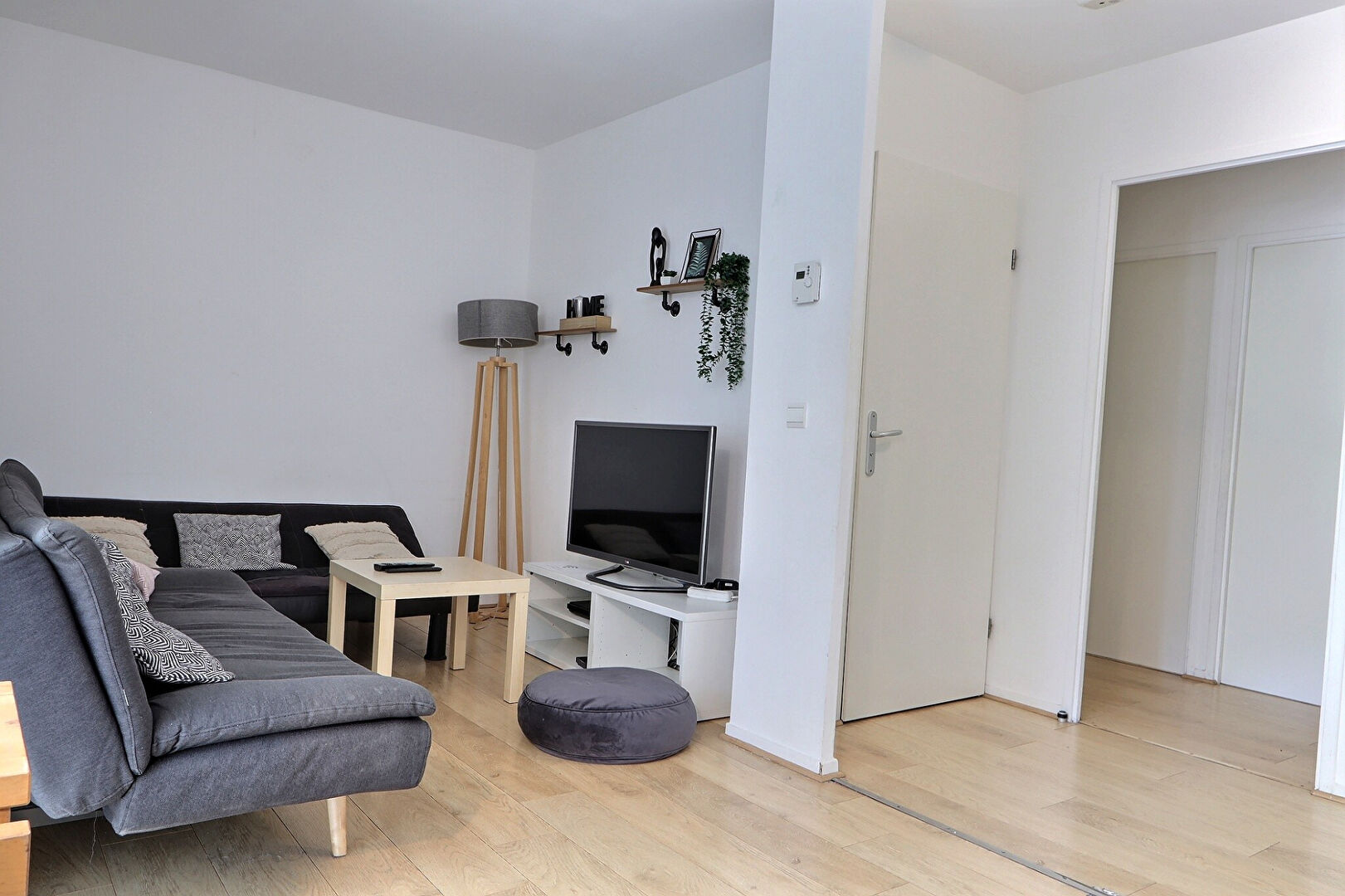 L'appartement est composé d'une entrée avec placard, d'une cuisine ouverte sur un petit séjour, de trois chambres avec placard dont une chambre avec balcon, d'un wc séparé et d'une salle de bain.