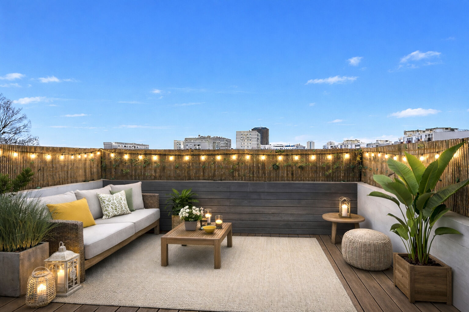 Une terrasse ensoleillée exposée sud, parfaite pour vos moments de détente ou vos repas en plein air, avec vue dégagée et sans vis-à-vis.