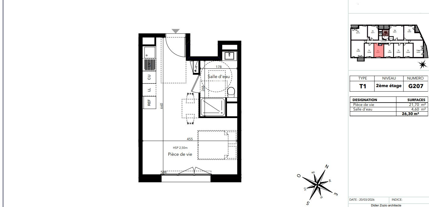 A VENDRE appartement T1 de 26,30m² situé au 2ème étage , comprenant un séjour cuisine de 21,70m² avec kitchenette aménagée et équipée, une salle d'eau avec WC.