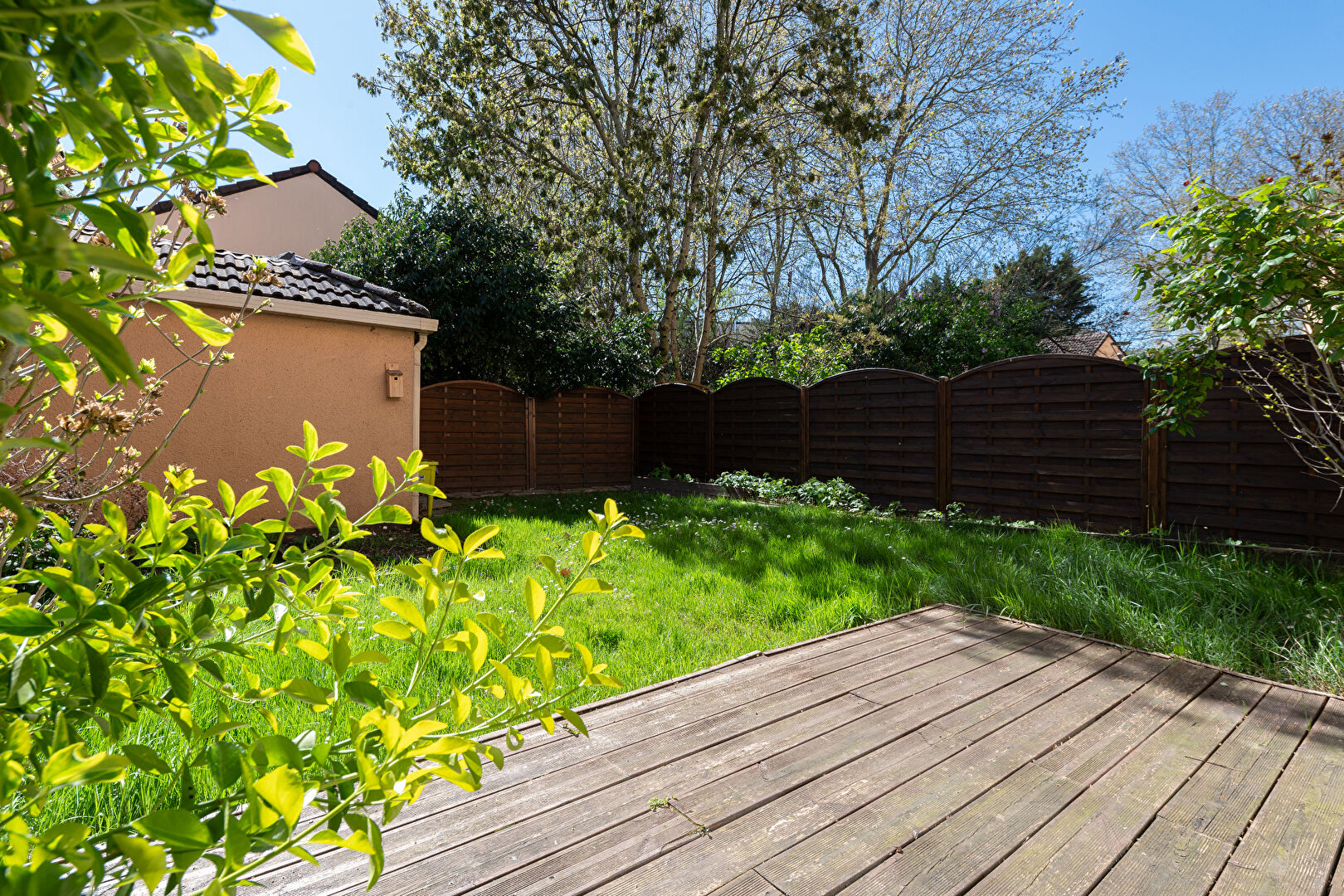 Vous bénéficierez également d'un agréable jardin entièrement clos d'environ 70 m², complété par une terrasse en bois, idéal pour profiter des beaux jours en toute tranquillité.