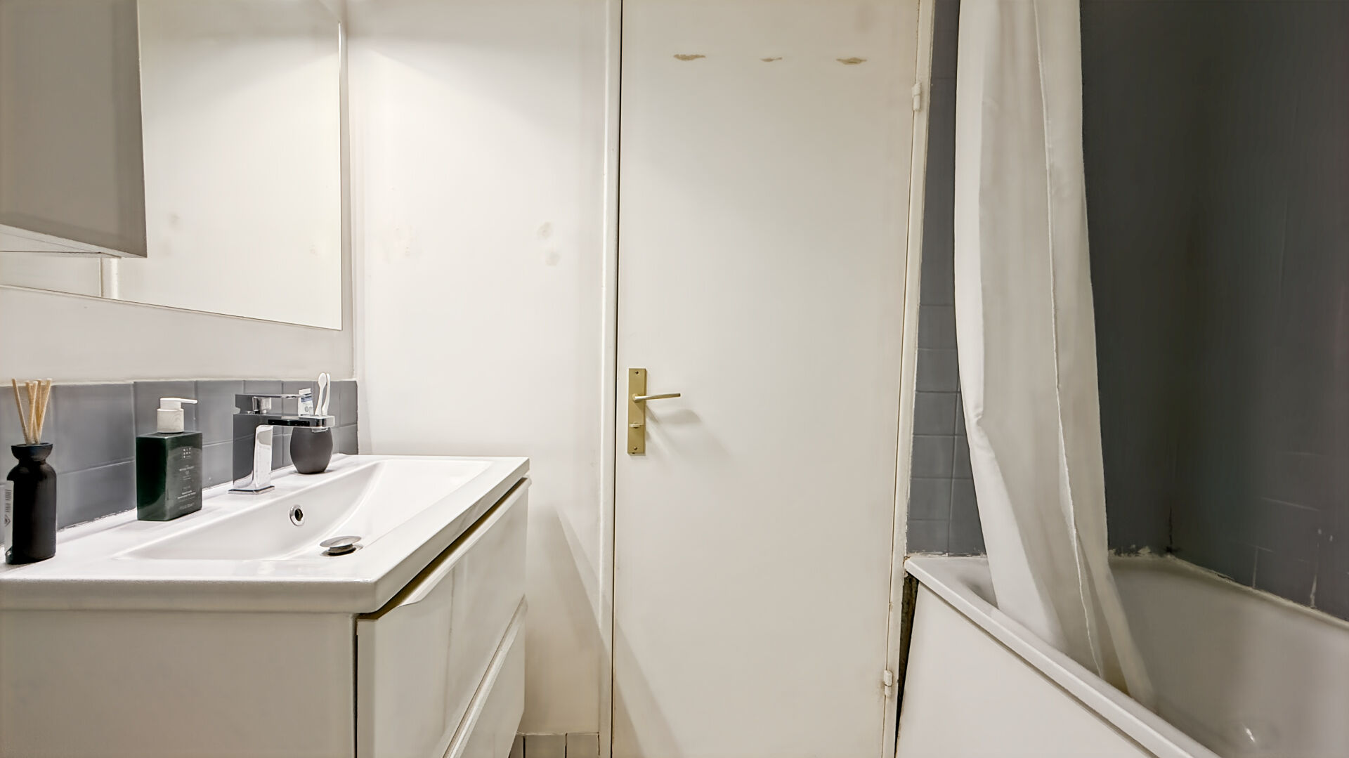 Une salle de bain avec baignoire,