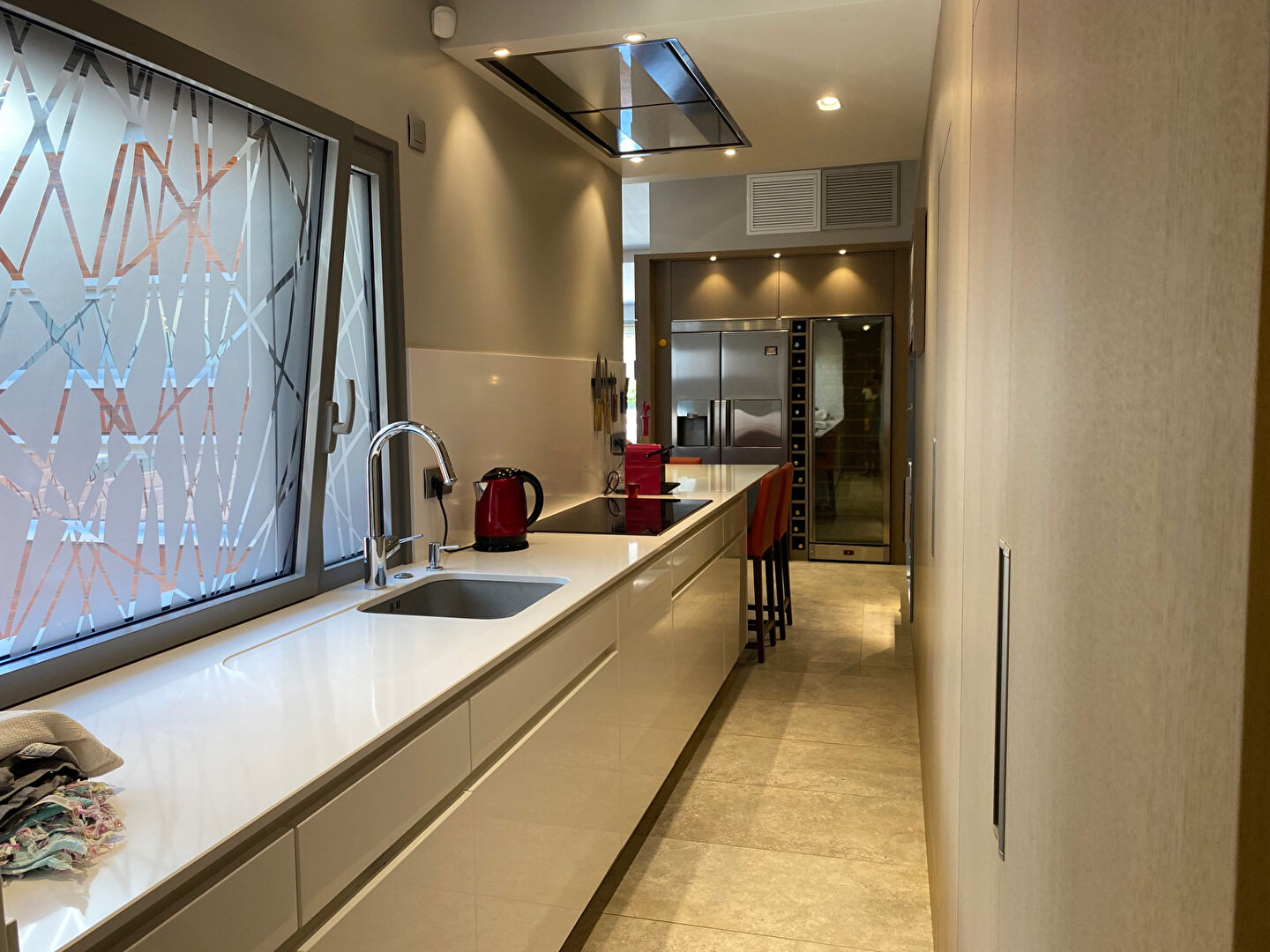L'accès se fait par une belle entrée à travers une coursive arborée vous conduisant au dégagement vestiaire au design affirmé. La partie nuit comprend 3 vastes chambres toutes équipées de dressings et salle de bains privatifs. A l'étage: une magnifique pièce de vie traversante avec cheminée s'ouvre sur la terrasse disposant d'une bassin d'agrément, une cuisine entièrement aménagée avec buanderie en fond.