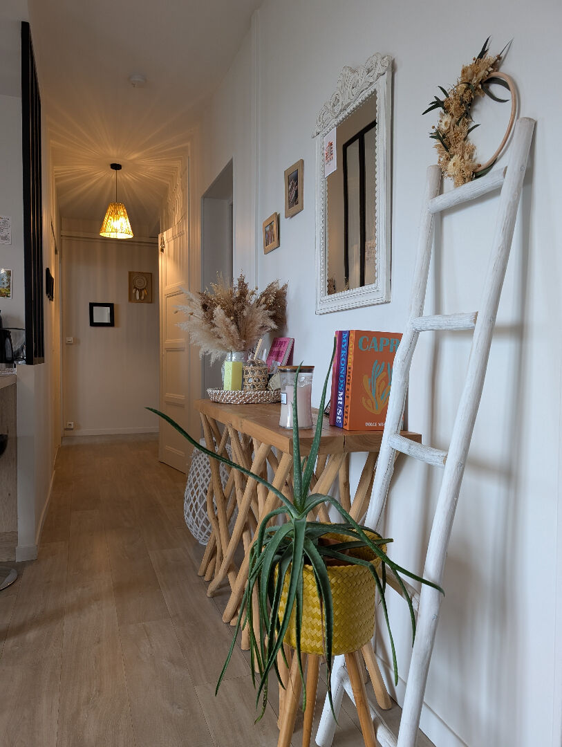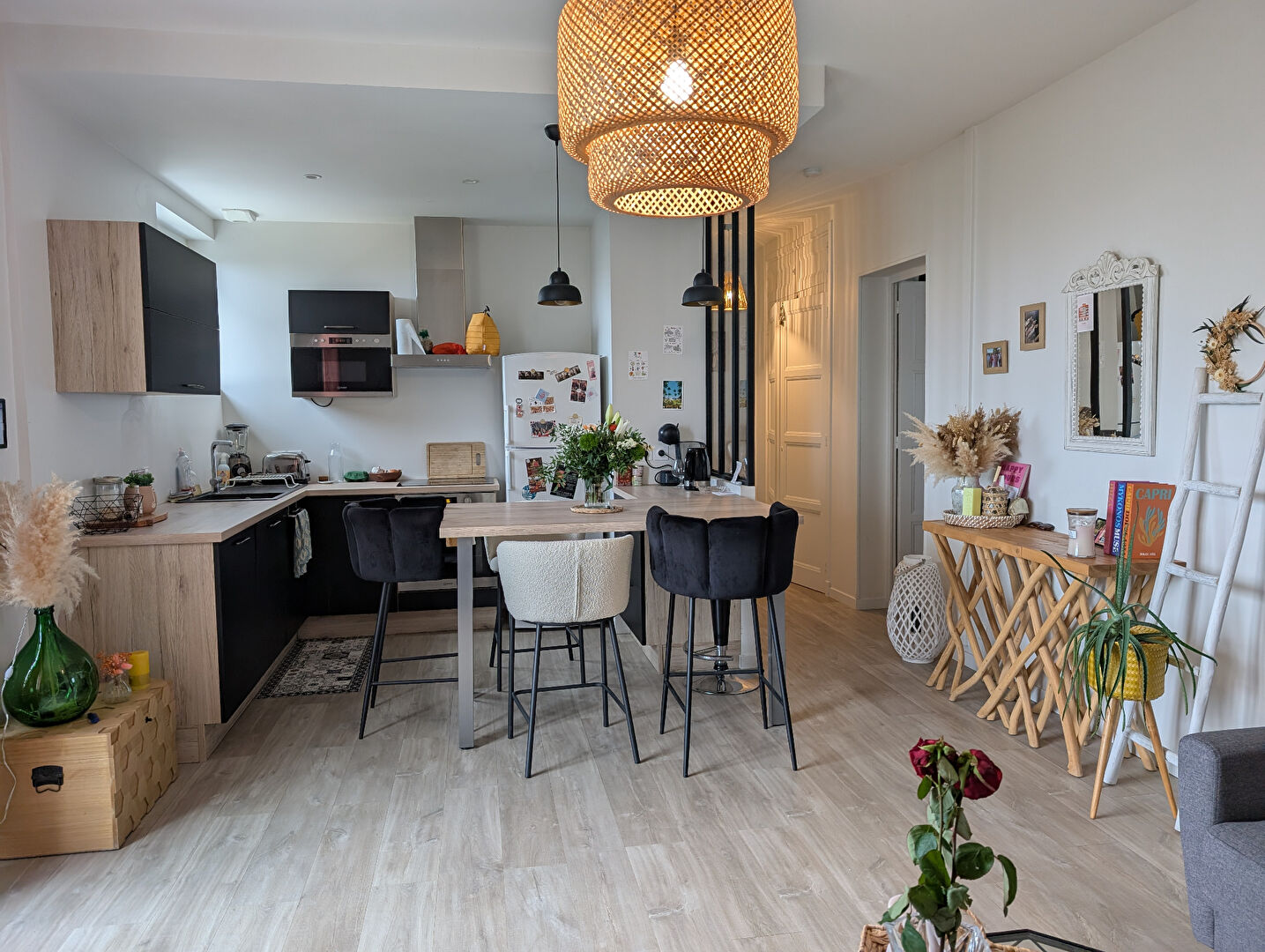 En entrant dans l'appartement, vous découvrez un grand couloir de dégagement avec placards très pratiques, qui dessert l'ensemble des pièces. Le séjour est lumineux et offre un espace agréable à vivre. La cuisine ouverte est entièrement équipée et aménagée.