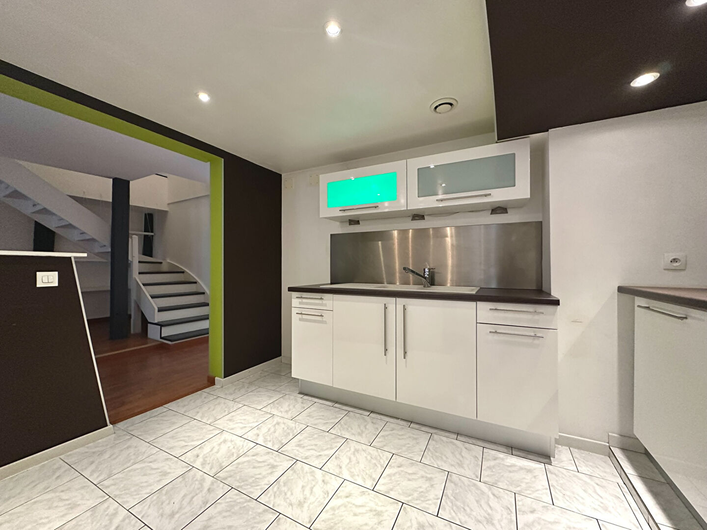 L'entrée s'ouvre sur un couloir avec placard desservant une salle d'eau, une buanderie avec WC, puis mène à une agréable pièce de vie traversante, composée d'un salon, d'une salle à manger et d'une cuisine ouverte, aménagée et équipée. Une chambre avec placard, orientée sur la place Bascoulard, complète ce niveau.
