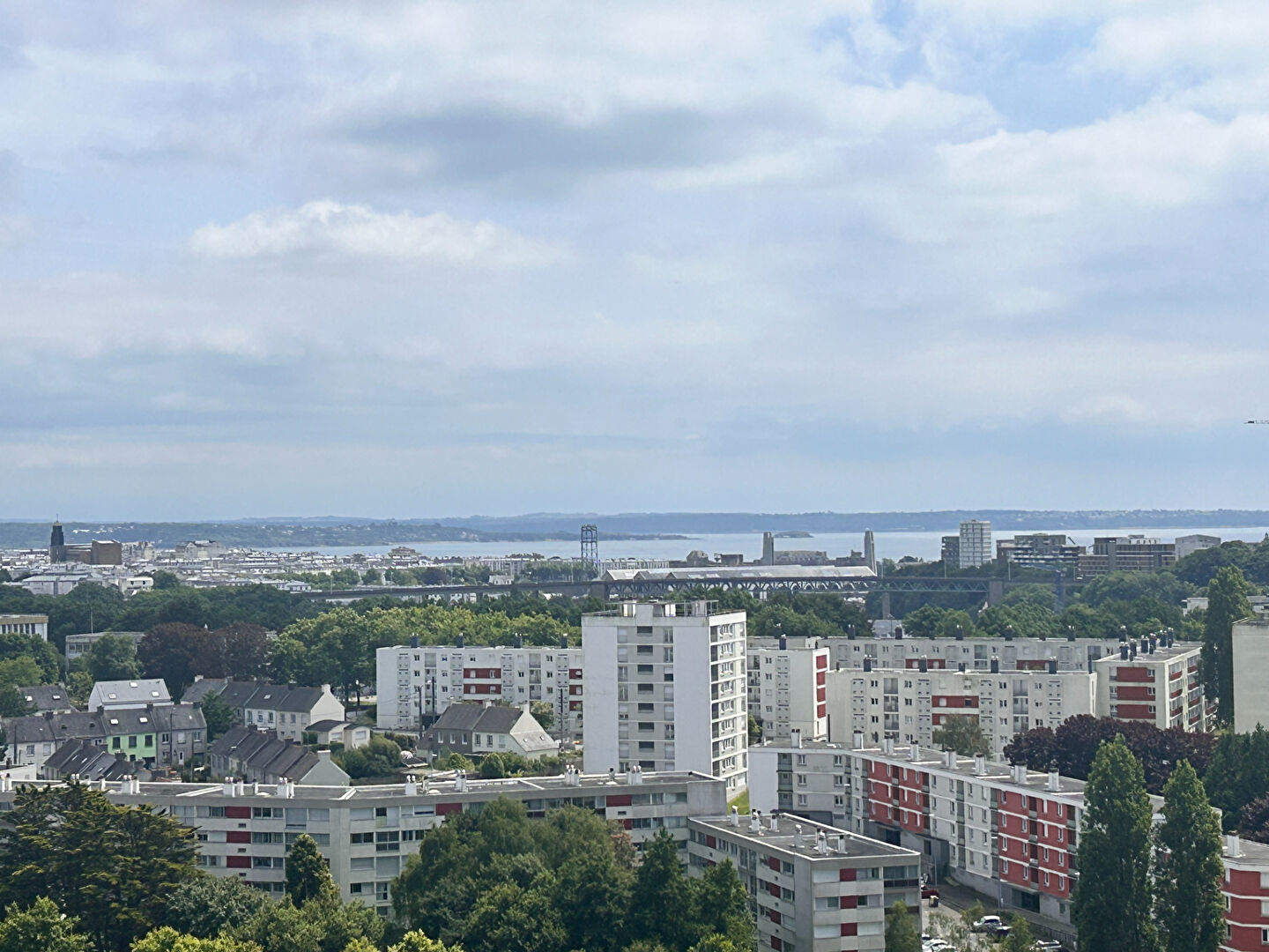 Secteur Bellevue, Au seizième étage avec ascenseur, Petite Vue sur Rade, un appartement de Type 2 rénové avec goûts composé d'une cuisine aménagée équipée récente ouverte sur une pièce de vie, une chambre, une salle de douche, un wc, une entrée et un dressing.