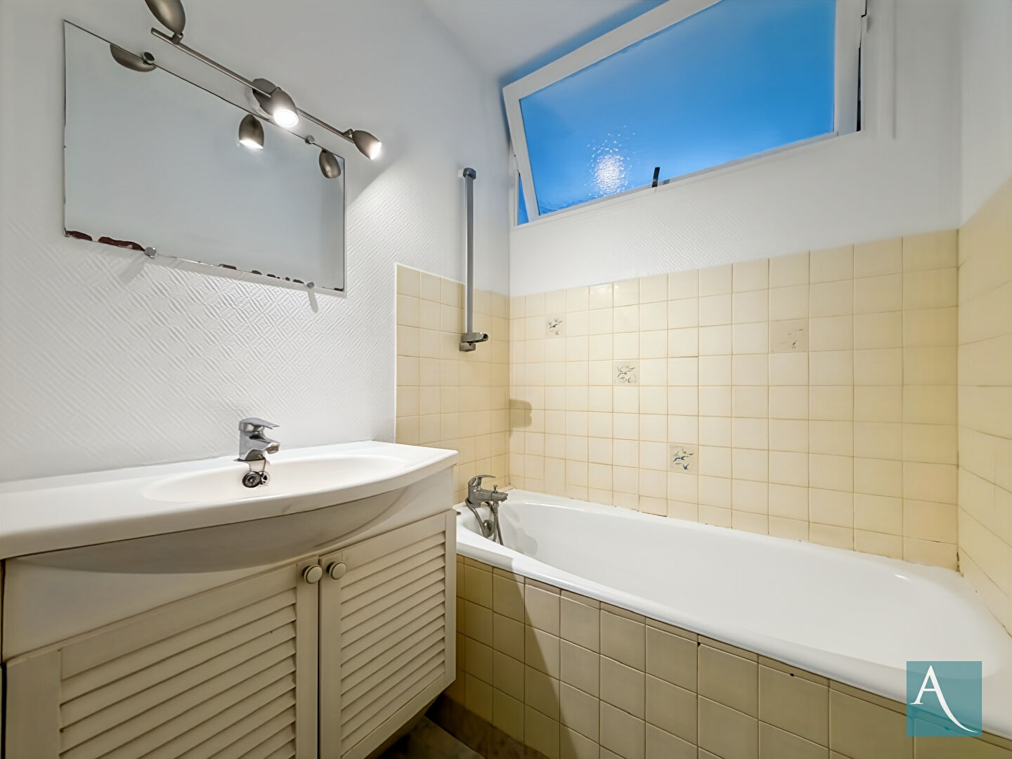 Deux chambres lumineuses avec placards intégrés, salle de bains à rafraîchir. Un appartement bien distribué, sans espace perdu.