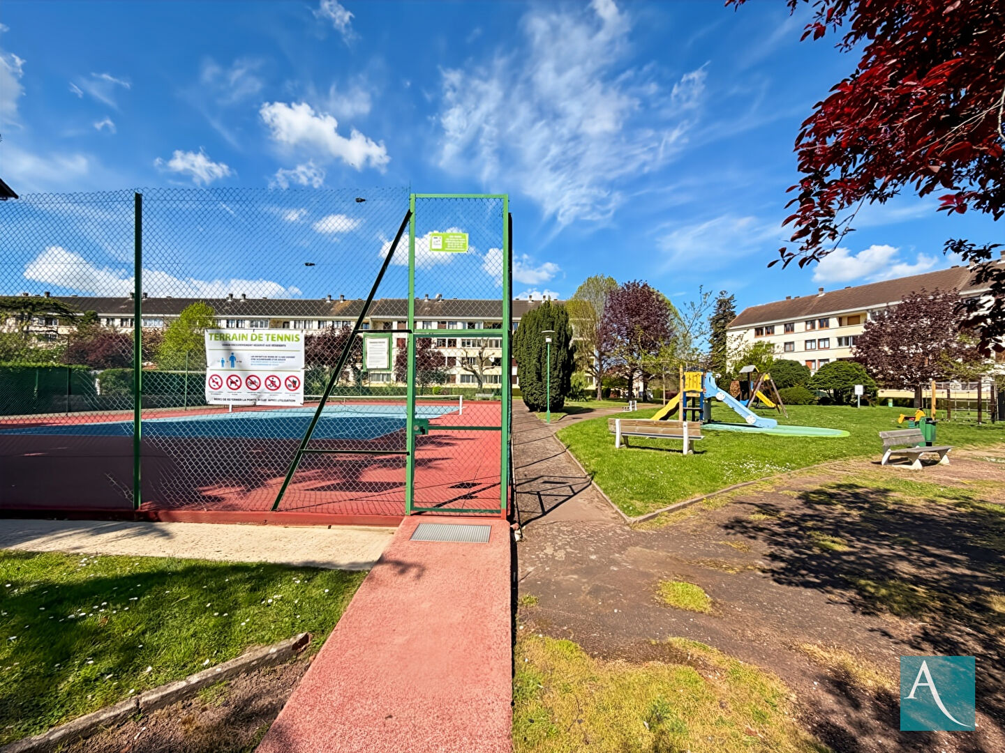Tennis et aire de jeux dans la résidence