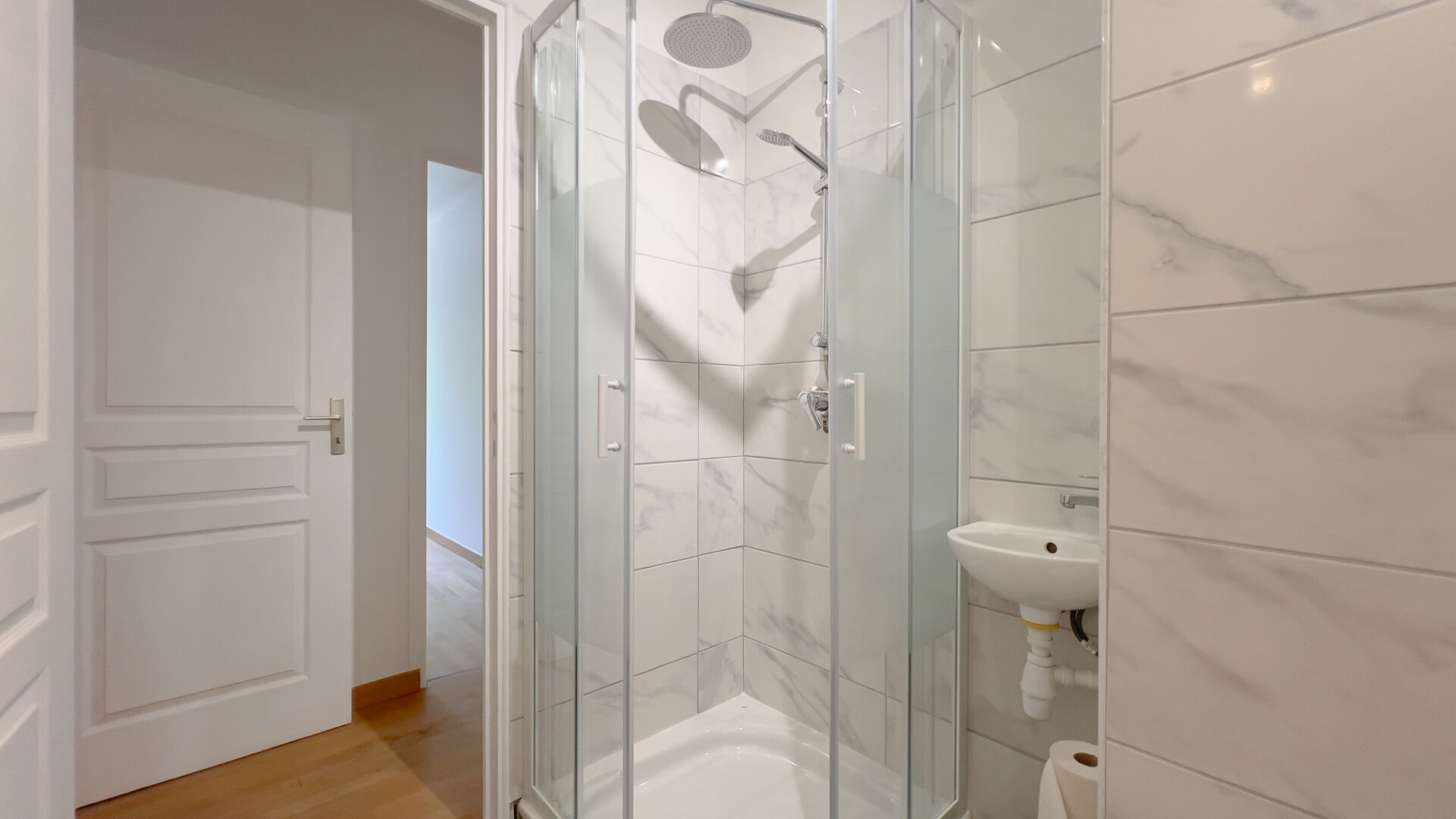 Egalement vendus avec cet appartement, deux places de parking extérieur privée et un garage double avec porte motorisée.