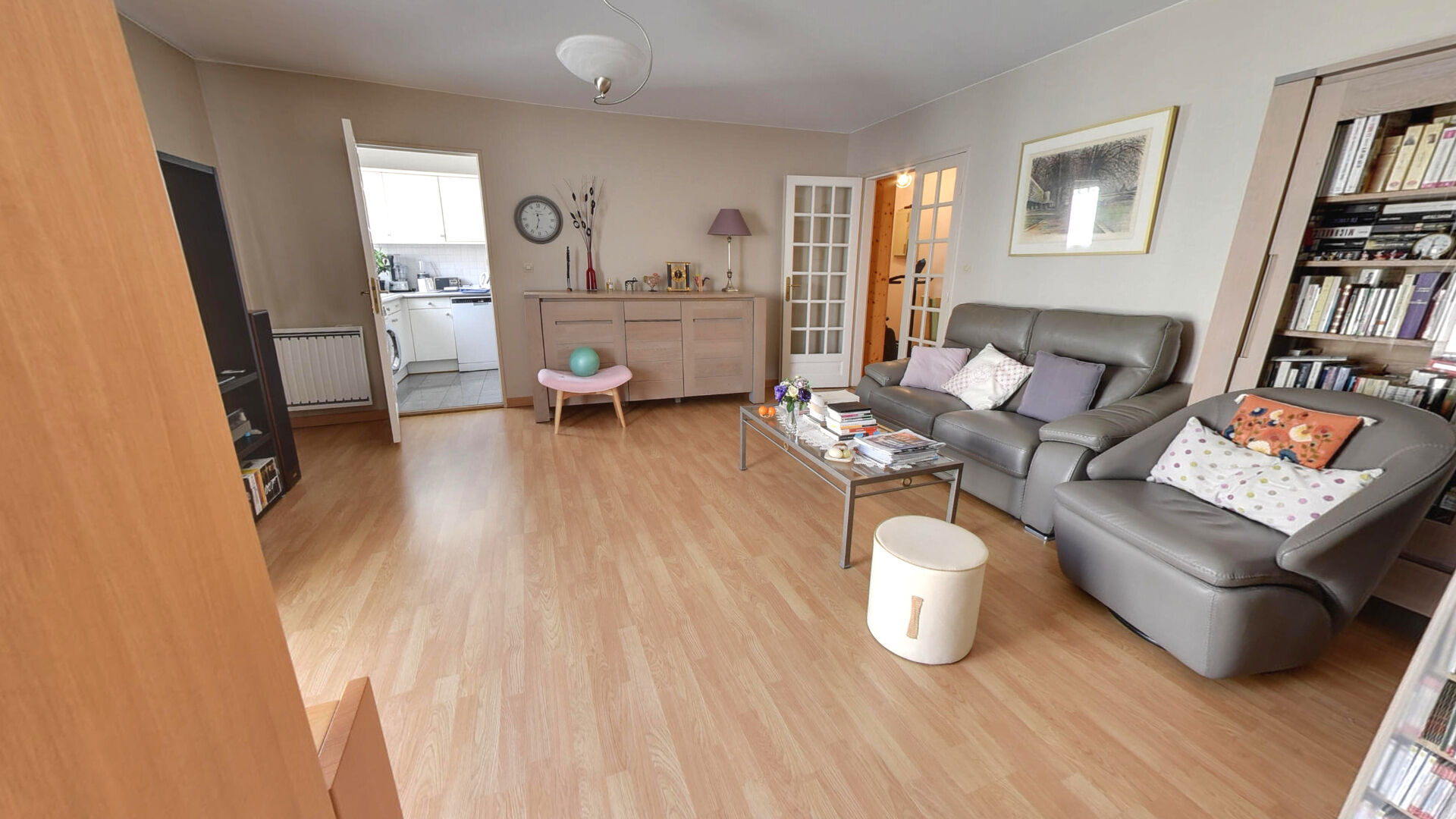 Il comprend une entrée, une cuisine aménagée, un séjour double lumineux de 34 m² (possibilité 3? chambre), deux chambres, une salle de bains et WC séparés.