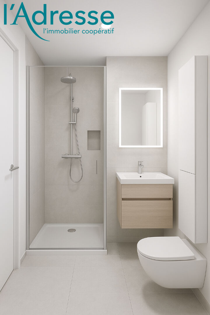 L'appartement se compose d'une entrée, d'un séjour donnant sur une terrasse exposée SUD/OUEST, d'une cuisine ouverte, ainsi qu'une salle de bain avec WC.