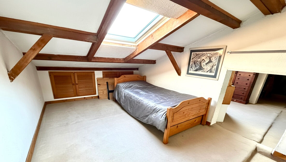 Un accès par escalier à 70 m² de combles aménagés et habitables, bénéficiant de 2 vélux en PVC double vitrage récemment remplacés, un espace idéal pour bureau, salle de jeux ou espace détente.