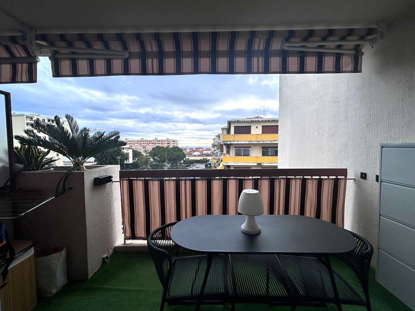 Ce bien dispose d'un balcon avec une exposition SUD avec un bel aperçu mer. L'appartement est climatisé.