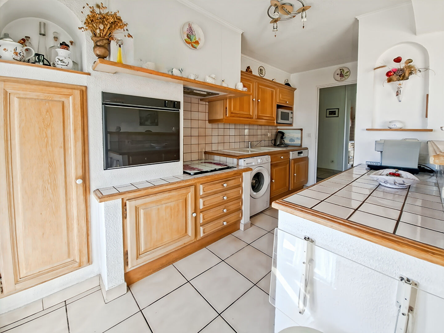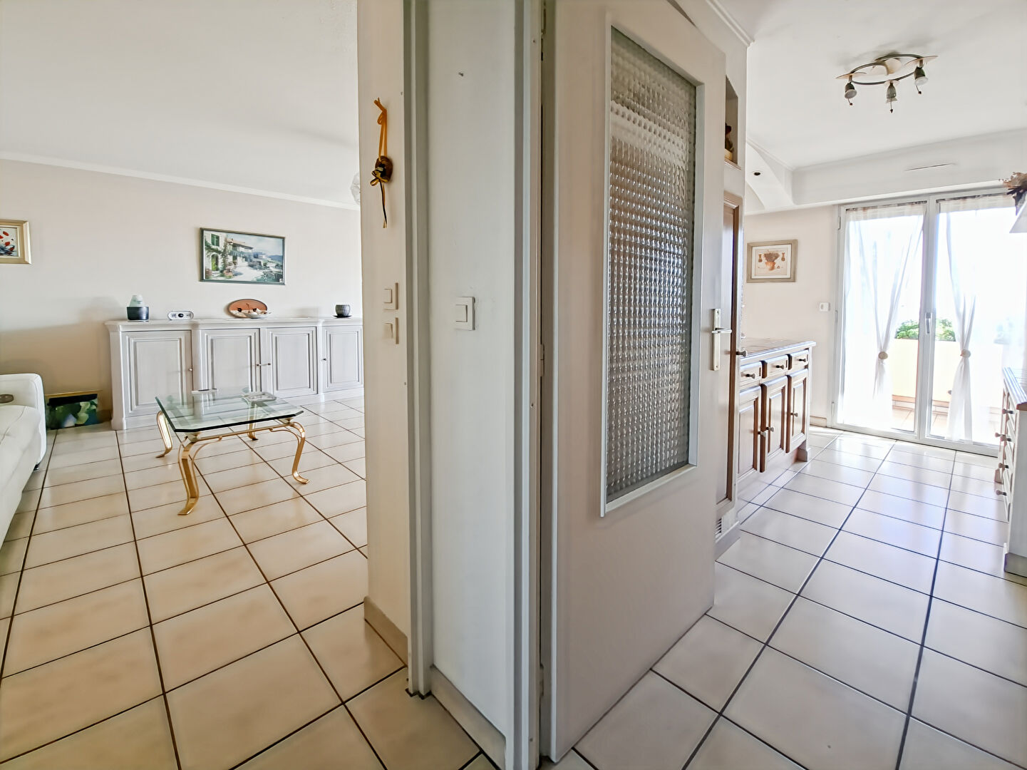 L'appartement se compose d'une entrée avec rangements, d'un grand séjour / salle à manger climatisés, avec cuisine ouverte entièrement équipée, le tout ouvrant sur une spacieuse terrasse d'environ 22 m², exposée plein sud, bénéficiant d'une agréable vue mer.