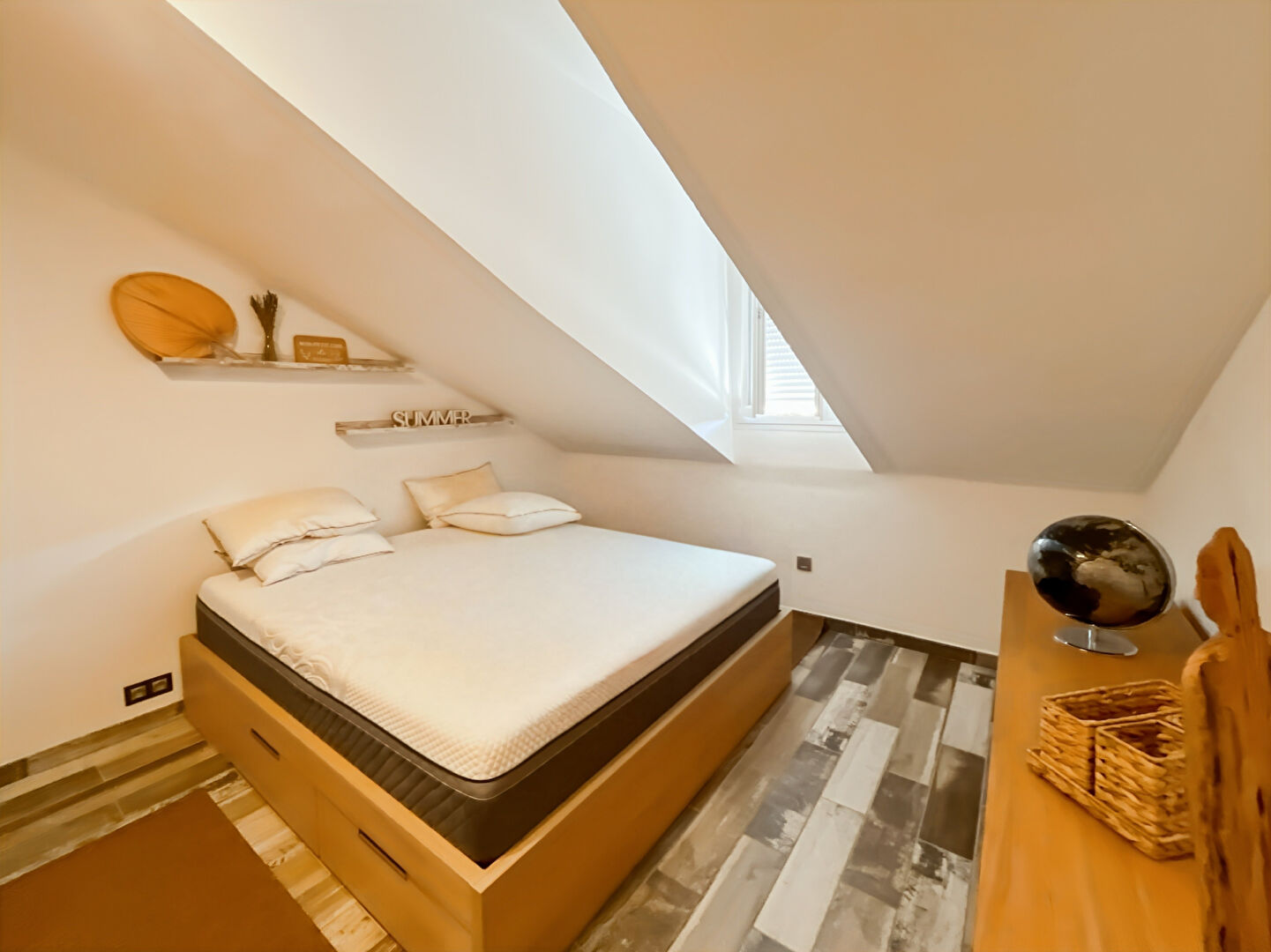 Dans un immeuble bourgeois bien entretenu, l'appartement est accessible par ascenseur jusqu'au 3e étage, puis par un escalier pour rejoindre le dernier étage. Sa localisation et son aménagement en font un choix idéal pour un pied-à-terre ou pour une location saisonnière.