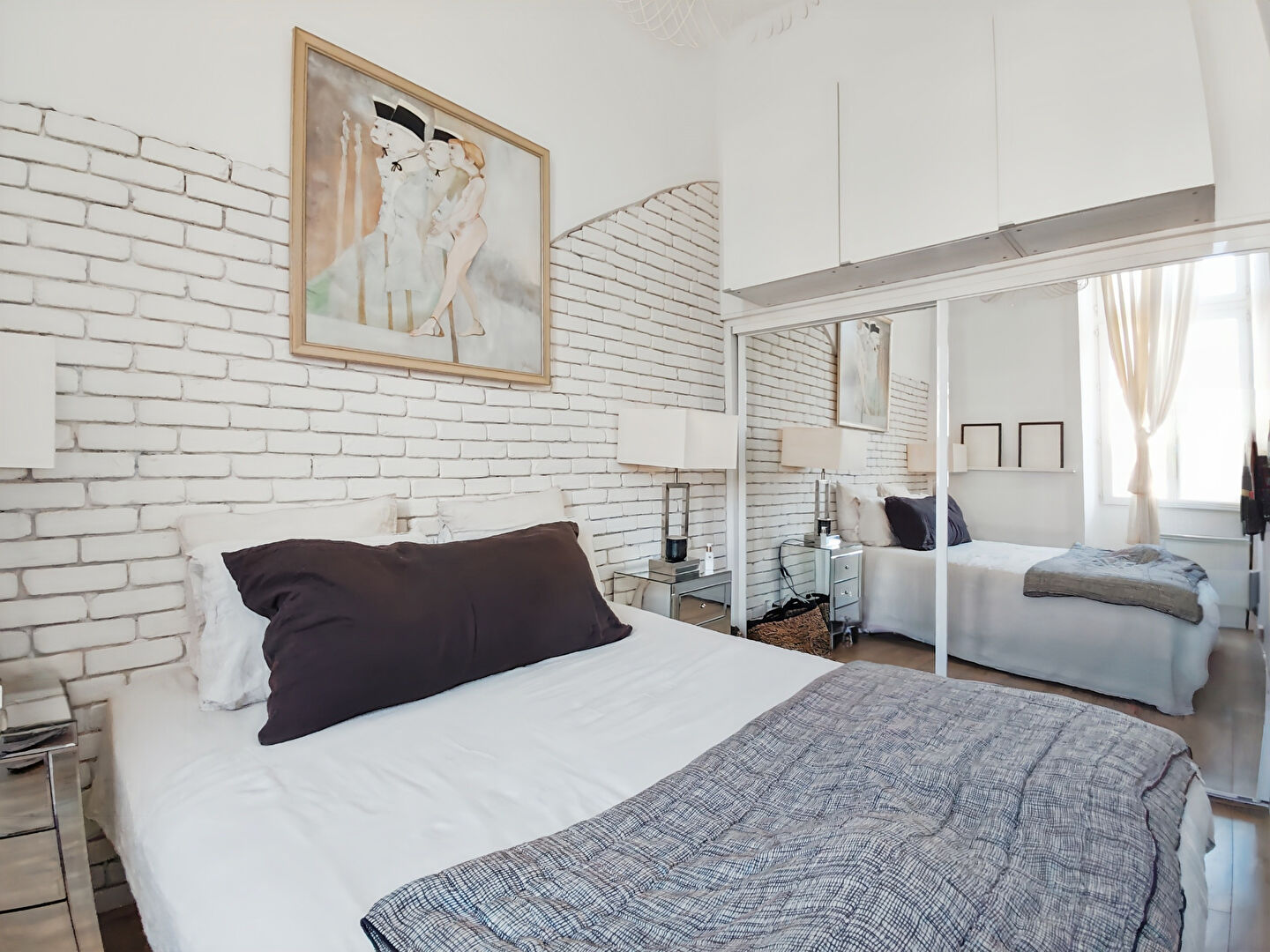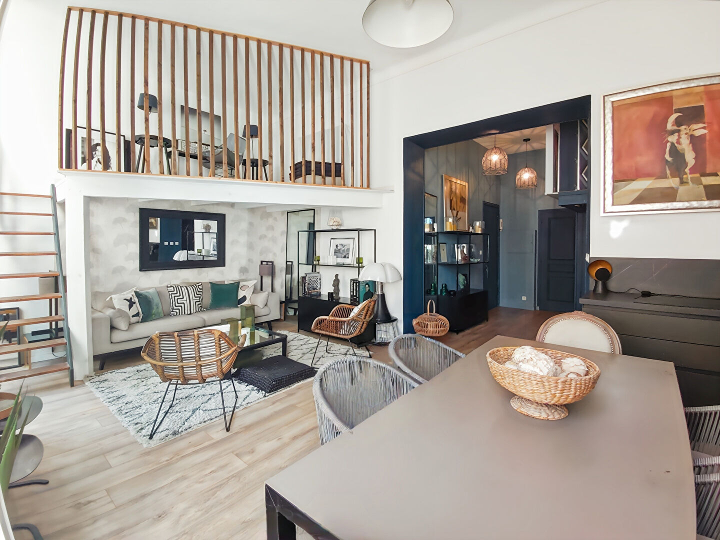 Parfaitement situé au coeur de Cannes et au calme; cet appartement de charme bénéficie en outre d'une belle terrasse exposée plein sud et d'une magnifique hauteur sous plafond ayant permis l'installation de deux mezzanines optimisant l'espace de manière confortable.