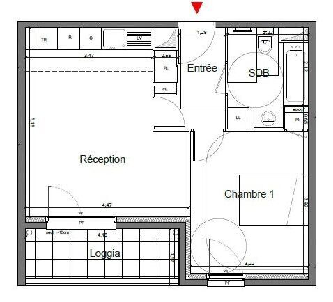 Entrée avec placard, Séjour lumineux ouvrant sur une LOGGIA spacieuse de plus de 6 m², Cuisine ouverte, Chambre confortable avec rangements, Salle de bains avec WC.