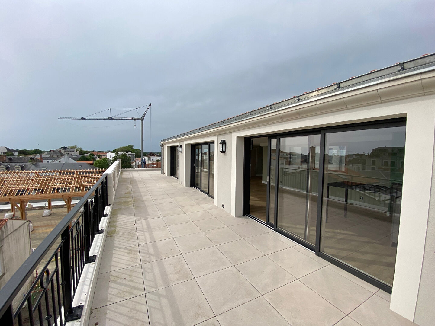 A VENDRE - CHALLANS - Appartement T4 de standing. Au coeur de la ville et dans une résidence haut de gamme, très bel appartement de 2024 d'environ 130m² situé au dernier étage, offrant une vue imprenable sur les halles. Il est composé d'un vaste et lumineux séjour, cuisine aménagée et équipée, trois chambres, dont une avec salle d'eau privative, salles d'eau, WC séparé. Cellier. Terrasse de 130m² offrant un superbe panorama de la ville. Place de stationnement couverte avec rangements sécurisés. Ascenseur. Interphone.