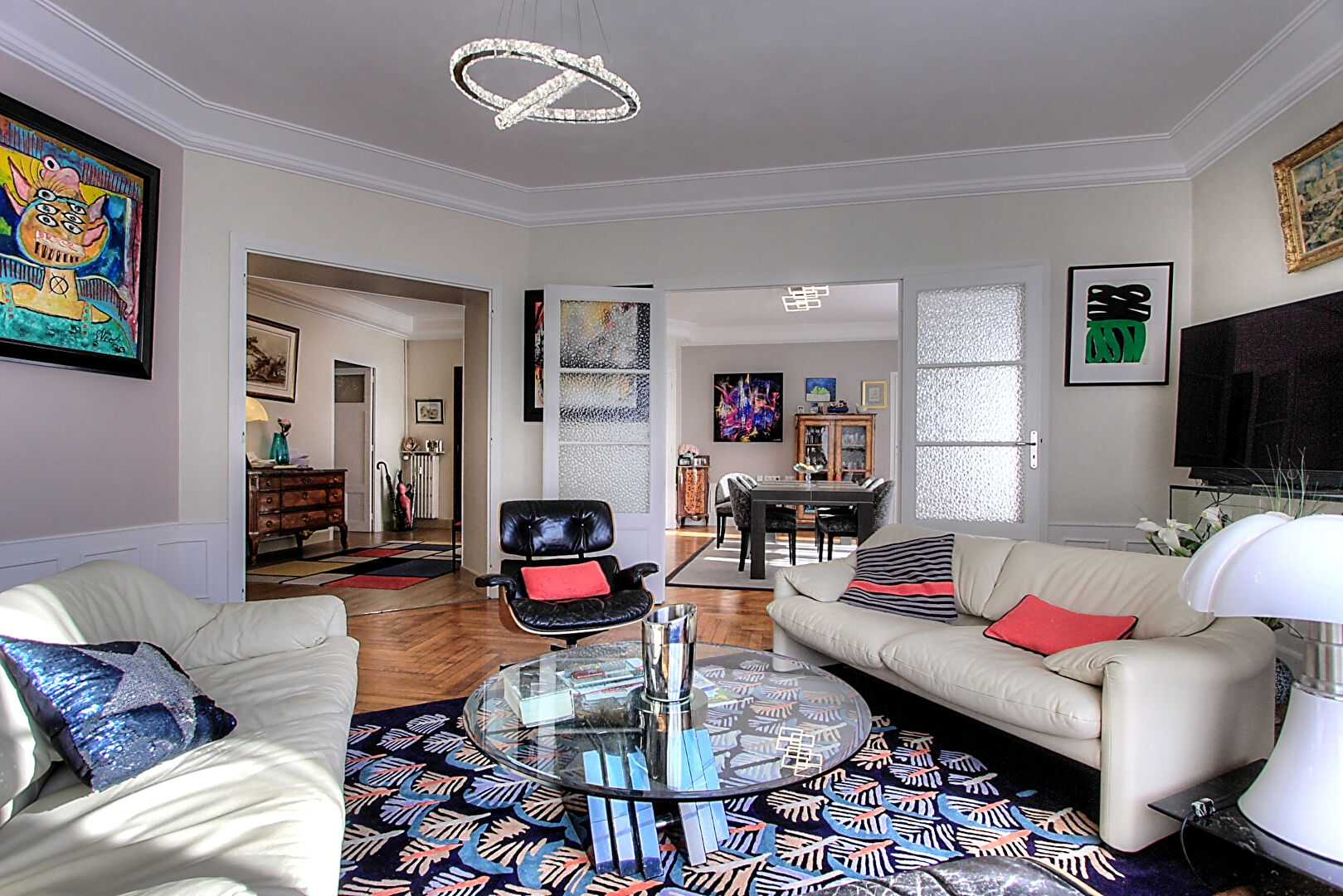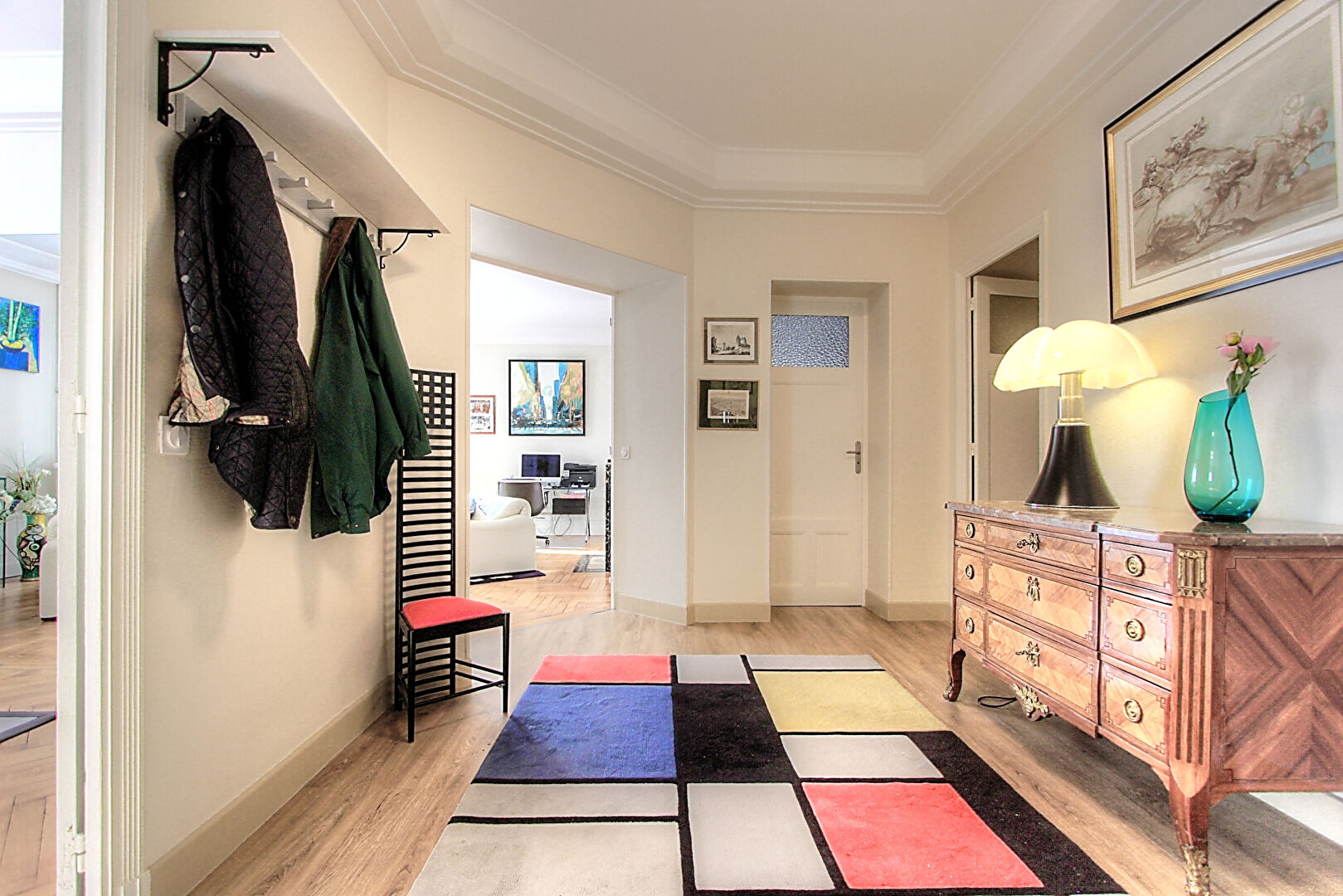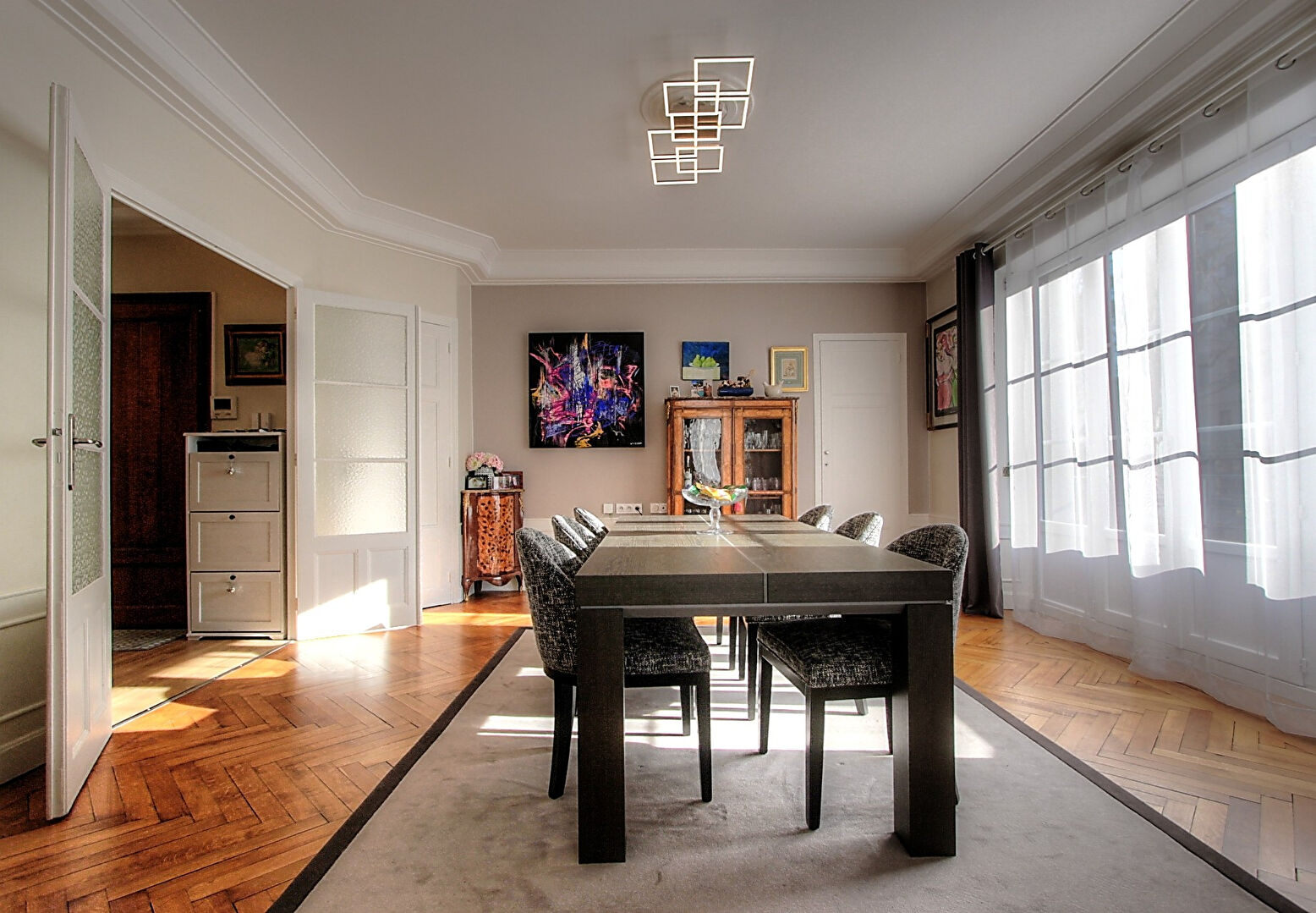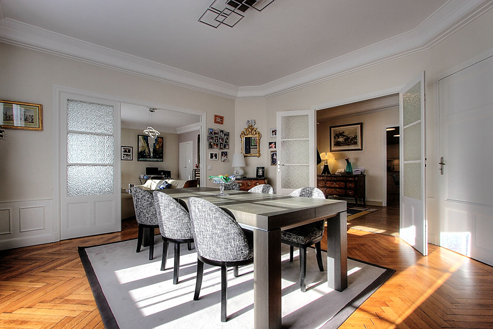 En fait, vous avez tout dans cet appartement de standing : le charme de l'ancien avec ses belles hauteurs sous plafonds, sa cheminée en marbre et son magnifique parquet massif en point de Hongrie, des volumes généreux dans chaque pièce, une vue dégagée avec une exposition optimale, de nombreux placards intégrés et une très belle rénovation apportant modernité et confort.
