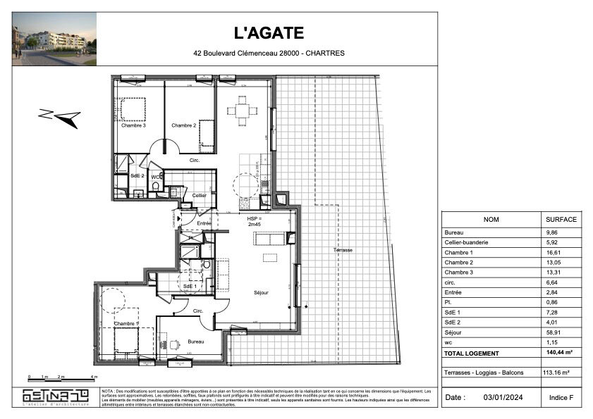 Votre agence L'Adresse Chartres vous propose à la vente cet appartement 4 pièces de 140,44 m², idéalement situé Boulevard Clemenceau à Chartres, dans la résidence neuve L'Agate, un programme moderne et de standing.