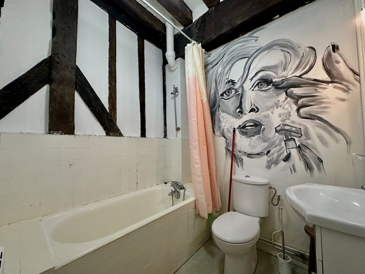 Alliant le charme de l'ancien (parquet, poutres, belle hauteur sous plafond) et le confort moderne, ce logement est idéal pour une personne seule ou un couple.